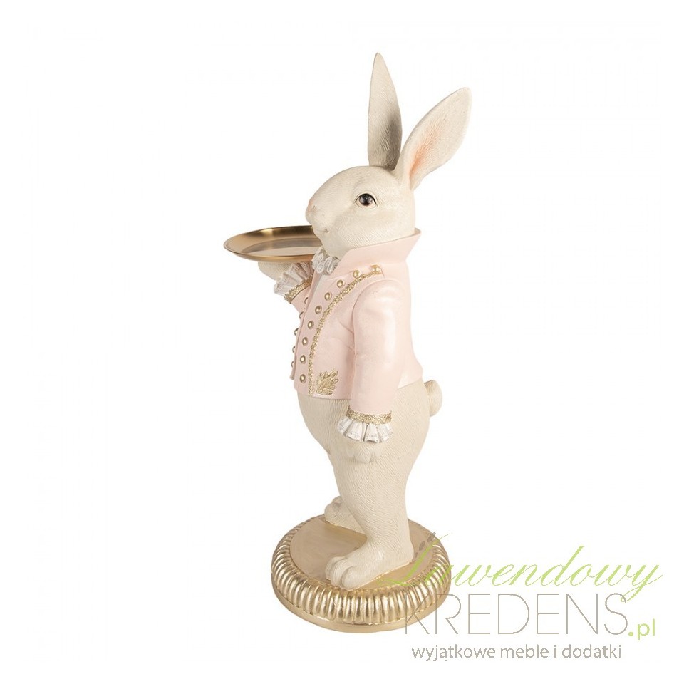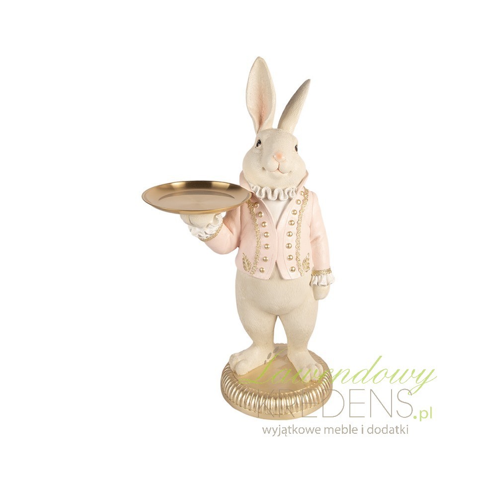 Duża figurka zająca z tacą Clayre & Eef do eleganckiej ekspozycji dekoracji