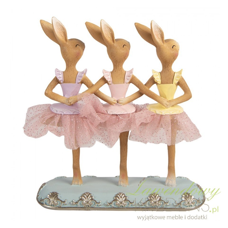 Jeśli przygotowujesz dom na święta i brakuje Ci jednego, mocnego akcentu, który „robi” aranżację bez wymiany całych dodatków, wybierz Dekorację Na Wielkanoc Zające B Clayre & Eef. Trzy zające w baletowych tutu tworzą lekki, pastelowy kadr: od razu ocieplają wnętrze i porządkują stylizację na wiosnę. To ozdoba, po którą sięgasz, gdy chcesz dodać wnętrzu uroku w duchu shabby chic, romantycznym i cottage, ale bez przesady i krzykliwych kolorów.Pastelowe zające w tutu jako wiosenna ozdoba w stylu shabby chic i cottage