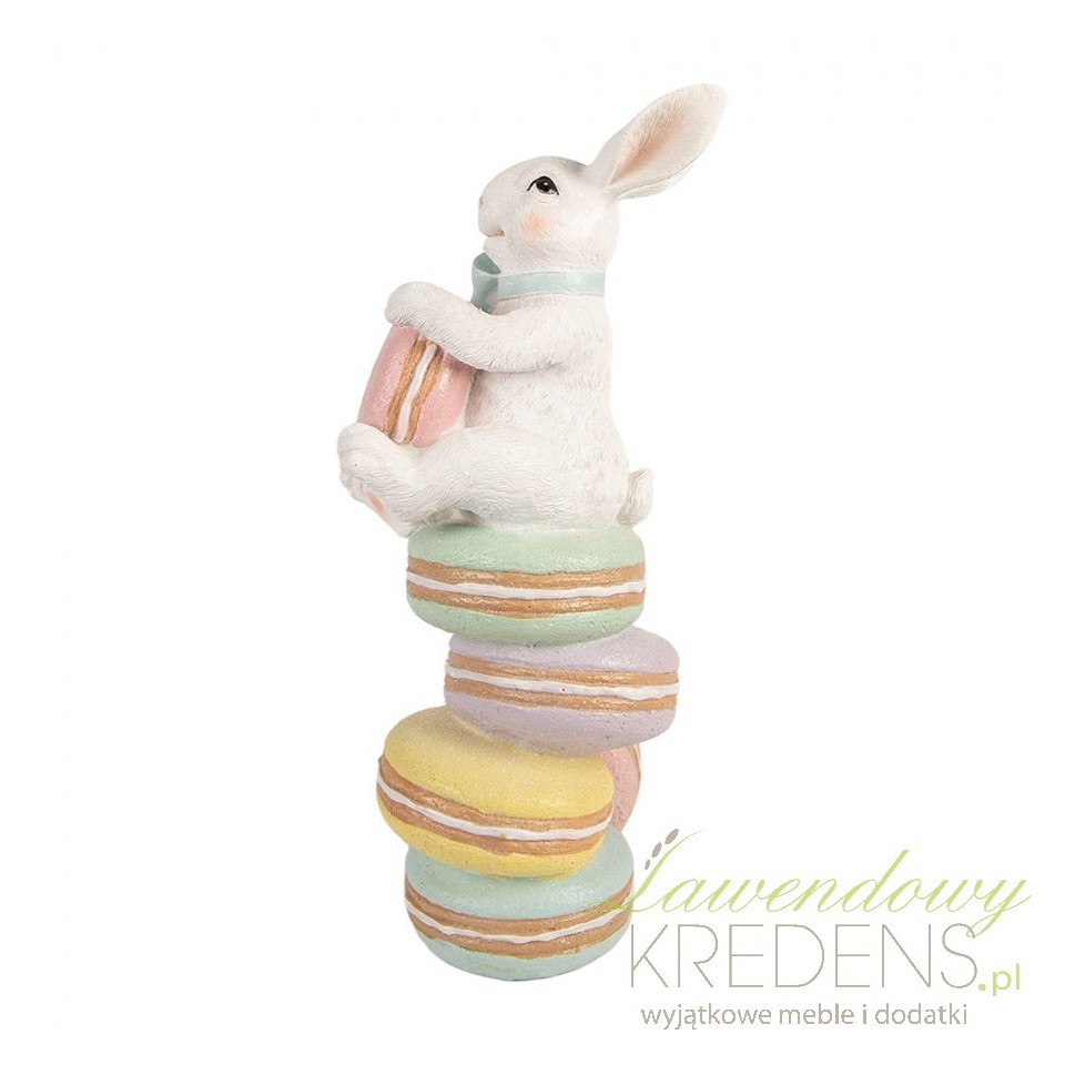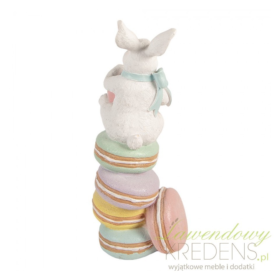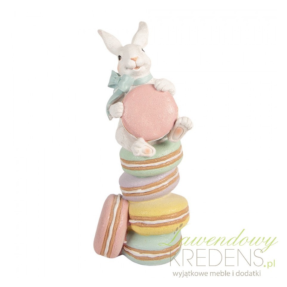 Jeśli brakuje Ci czasu na strojenie domu, a chcesz uzyskać efekt dopracowanej aranżacji, ta figurka ozdobna Królik Pastelowa Wielkanoc R Clayre & Eef rozwiązuje problem jednym detalem. Rzeźbiarska forma z królikiem wspinającym się po makaronikach buduje wrażenie warstwowości i „cukierniczej” lekkości, dzięki czemu komoda, konsola w przedpokoju czy stół w jadalni wyglądają odświętnie bez dodatkowych dekoracji.Pastelowe makaroniki i królik z kokardą – dekoracja w stylu spring, shabby i cottage