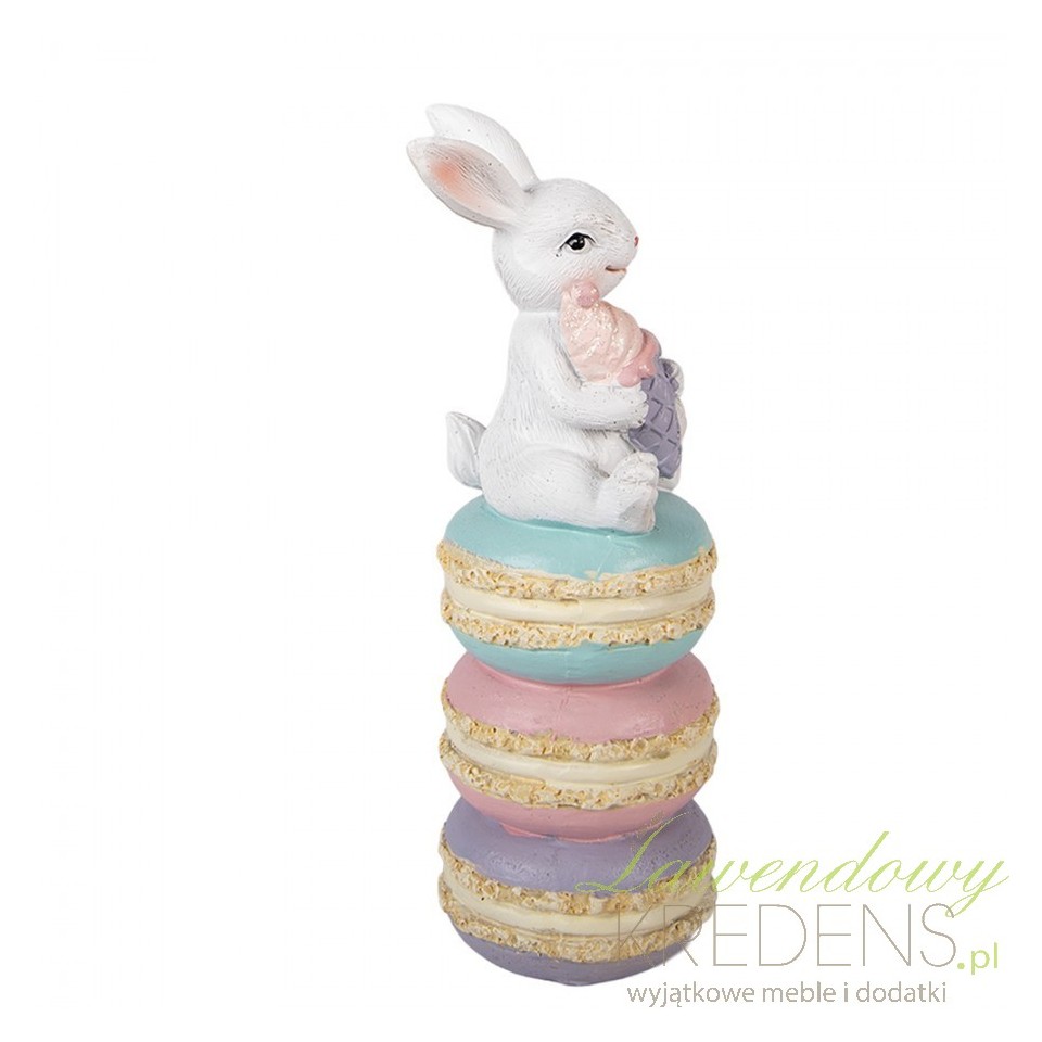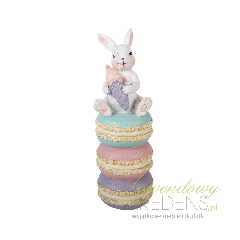 Jeśli co roku dekorujesz dom na święta, ale brakuje Ci jednego elementu, który „spina” całą kompozycję (stół, komodę i parapet), ta figurka ozdobna Królik Pastelowa Wielkanoc U Clayre & Eef rozwiązuje problem w minutę. Zestaw pastelowych makaroników tworzy stabilną, pionową formę, dzięki której dekoracja nie ginie wśród talmy, pisanek i świec. Królik z wafelkiem wprowadza lekko humorystyczny, cukierniczy motyw, który pasuje do wnętrz w stylu shabby chic, cottage i soft vintage.Pastelowe makaroniki jako dekoracja wiosenna – kolor, który nie gryzie się z zastawą