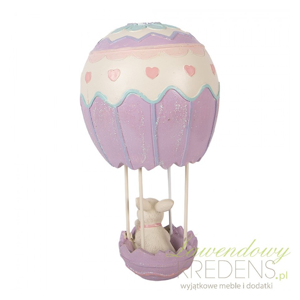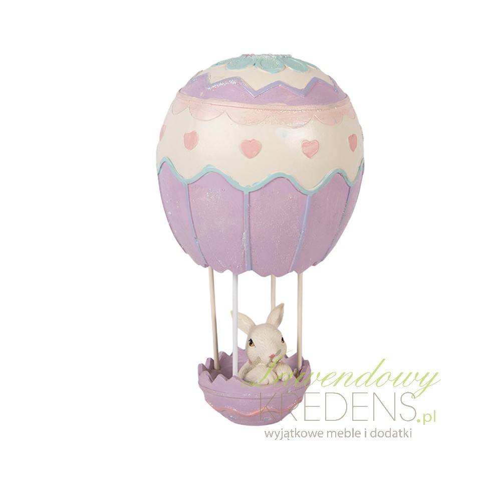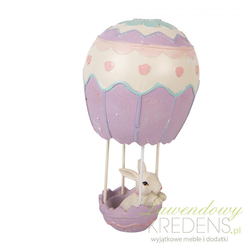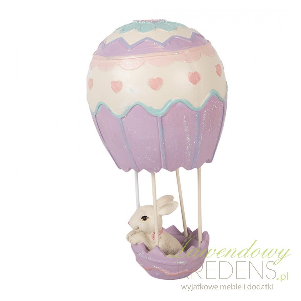 Jeśli co roku masz ten sam problem: stół wielkanocny wygląda „ładnie”, ale brakuje mu jednego mocnego akcentu, który spina całą aranżację – ta figurka ozdobna Królik Pastelowa Wielkanoc X Clayre & Eef rozwiązuje go od ręki. To dekoracja o charakterze kolekcjonerskim: balon w pastelach (lawenda, krem, pudrowy róż) i królik w koszyku budują scenę, która przyciąga wzrok bez nadmiaru błysku. Polecam ją szczególnie do stylu romantycznego, prowansalskiego i shabby chic, gdzie liczą się miękkie kolory, delikatna faktura i subtelne przetarcia optyczne.Pastelowy balon z królikiem jako centralna ozdoba stołu, komody lub parapetu