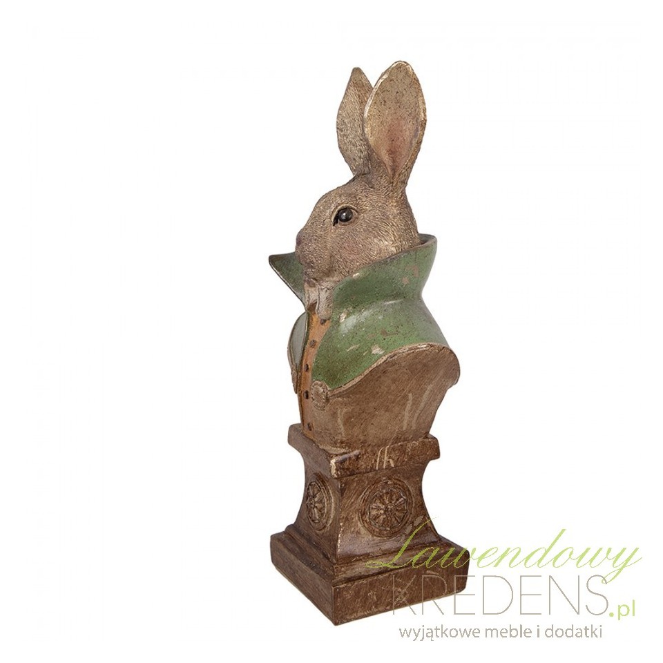 Jeśli urządzasz salon, jadalnię lub hol i brakuje Ci mocnego akcentu dekoracyjnego, który „spina” aranżację w stylu vintage, to właśnie takie popiersie robi różnicę. Ten Zając Clayre & Eef wnosi klimat starej pracowni i domowego dworku: widać postarzane wykończenie, subtelną patynę oraz rzemieślniczą teksturę, dzięki którym dekoracja nie wygląda jak masowa figurka. Polecam go tam, gdzie chcesz dodać charakteru bez krzykliwych kolorów: na konsoli, komodzie, w biblioteczce albo w witrynie z porcelaną.Dekoracja zająca w formie popiersia – sposób na elegancki “punkt ciężkości”