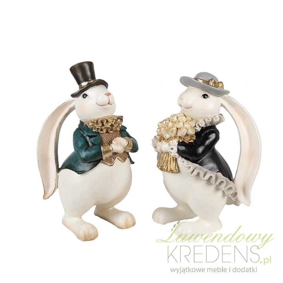 Figurka królika na Wielkanoc świetnie łączy elegancję z urokiem ręcznie dopracowanych detali, dzięki czemu: