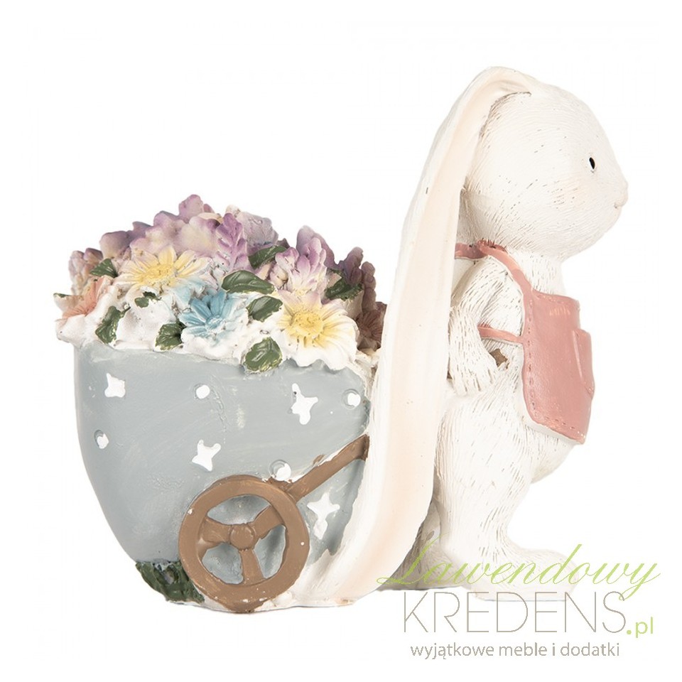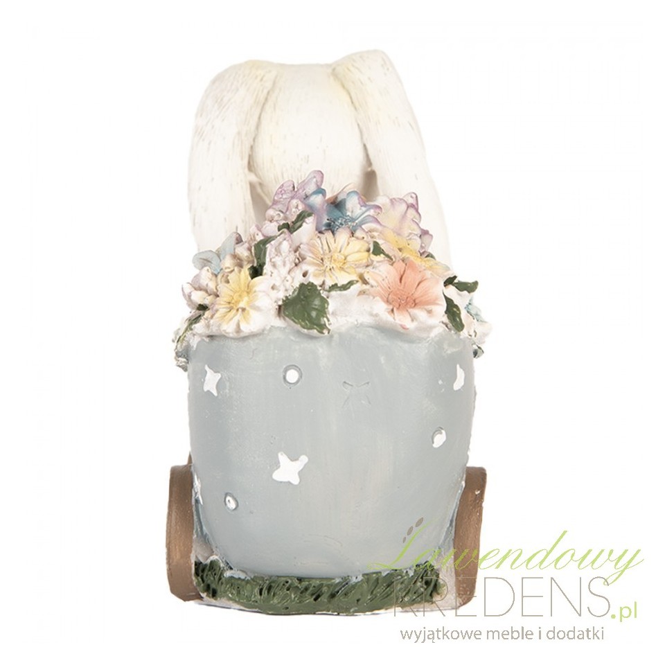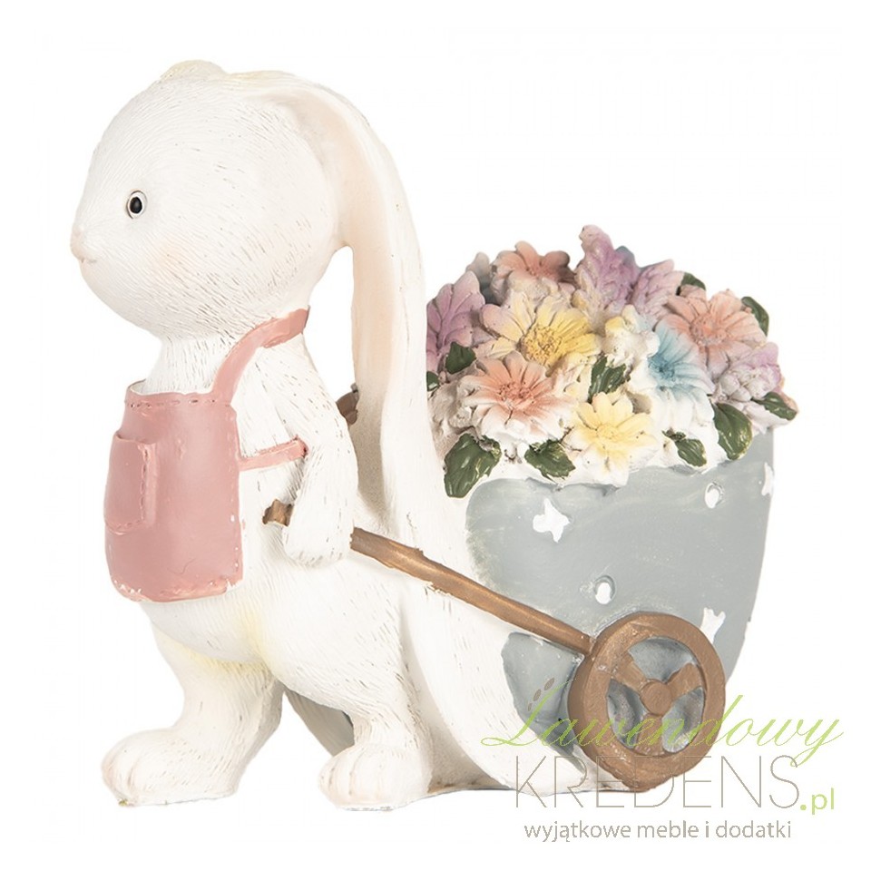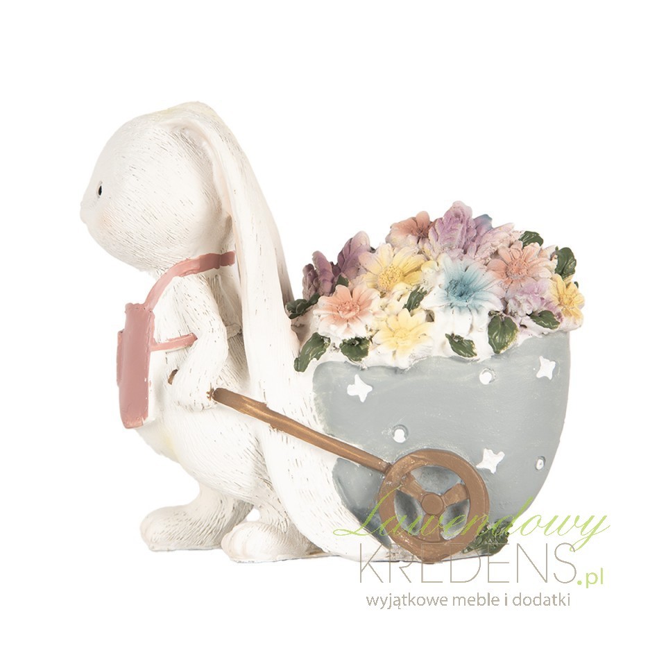 Wielkanocna dekoracja Clayre & Eef – królik z wózkiem pełnym kwiatów