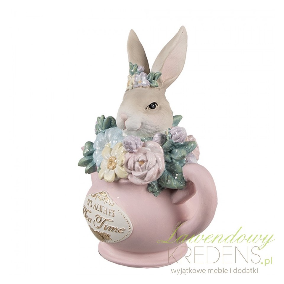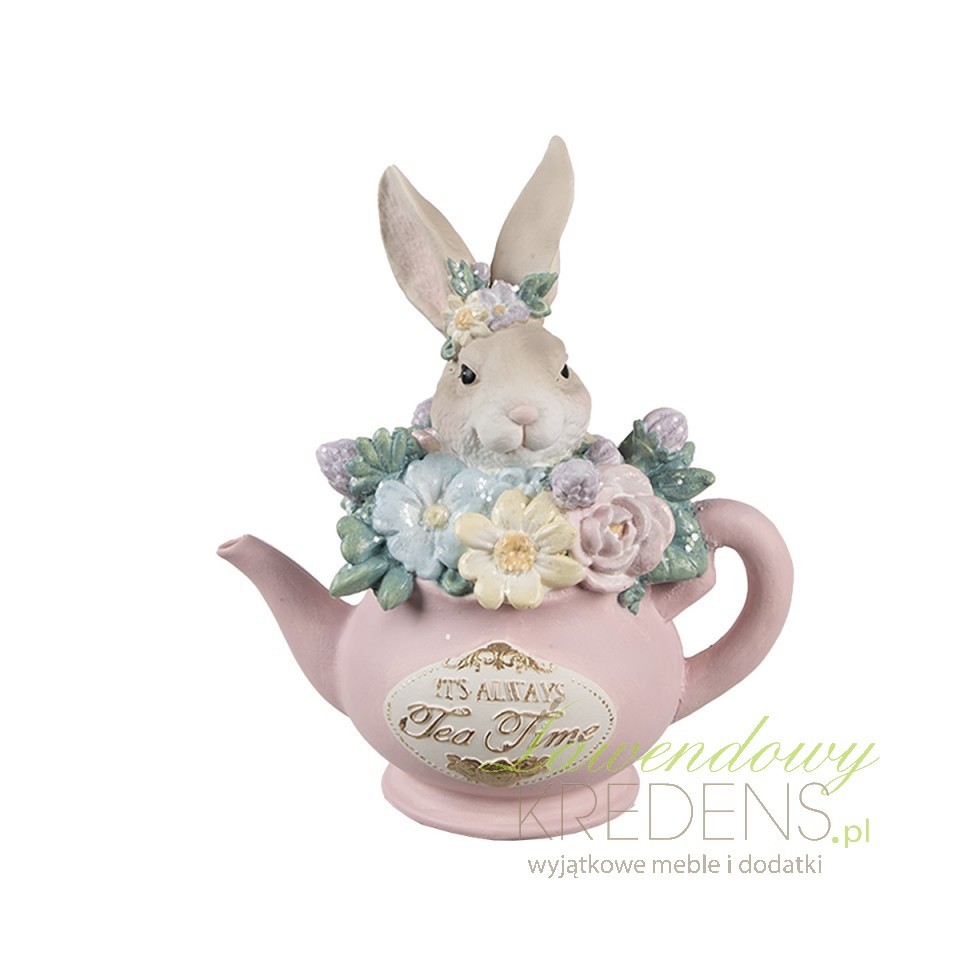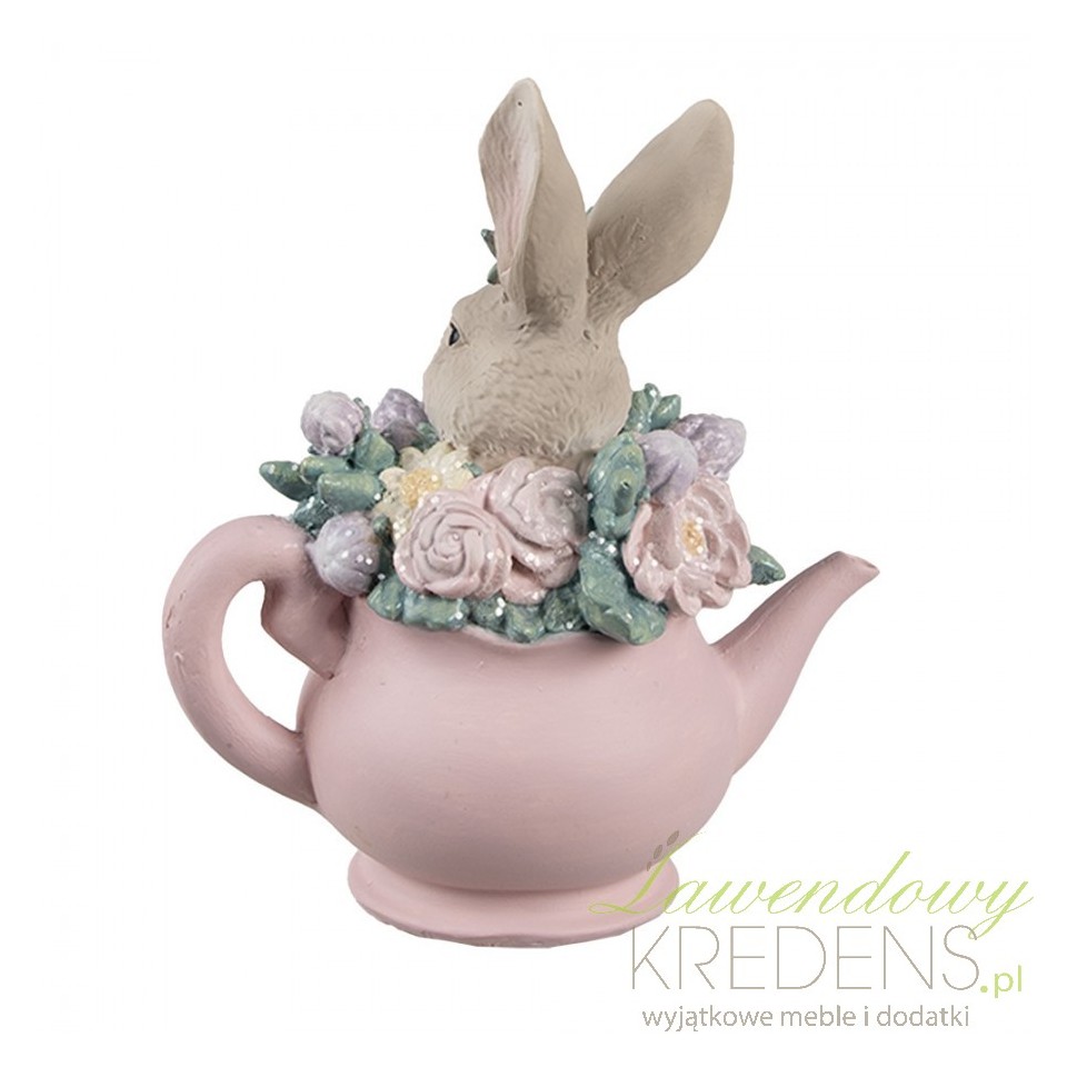 Wprowadź do wnętrza wiosenną lekkość dzięki figurce, która łączy urok króliczka z romantycznym motywem herbacianego dzbanka. Ta