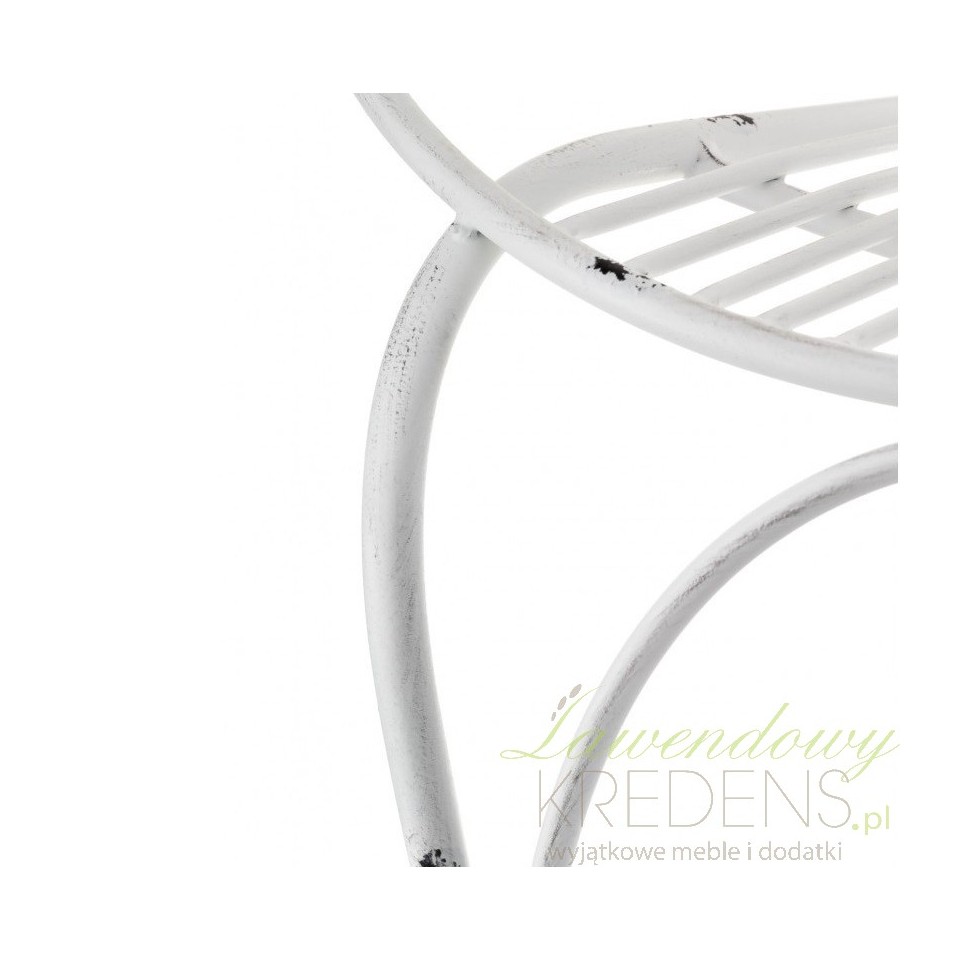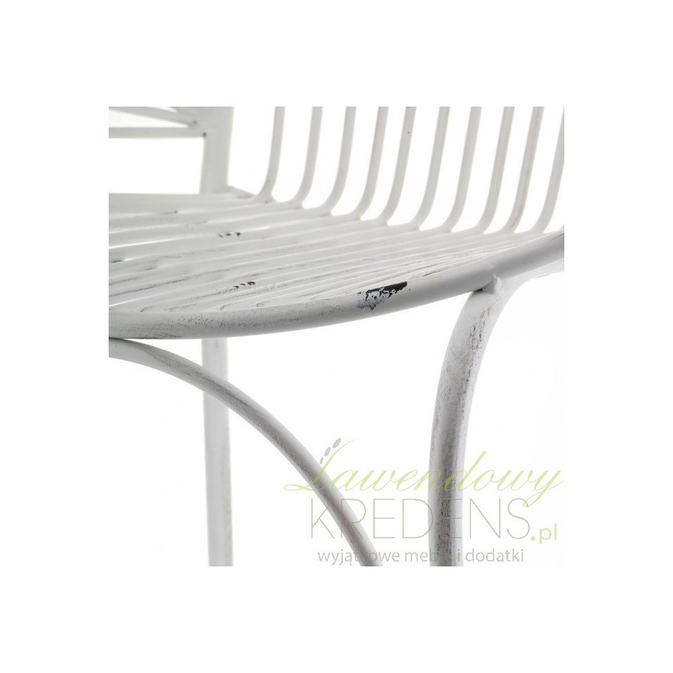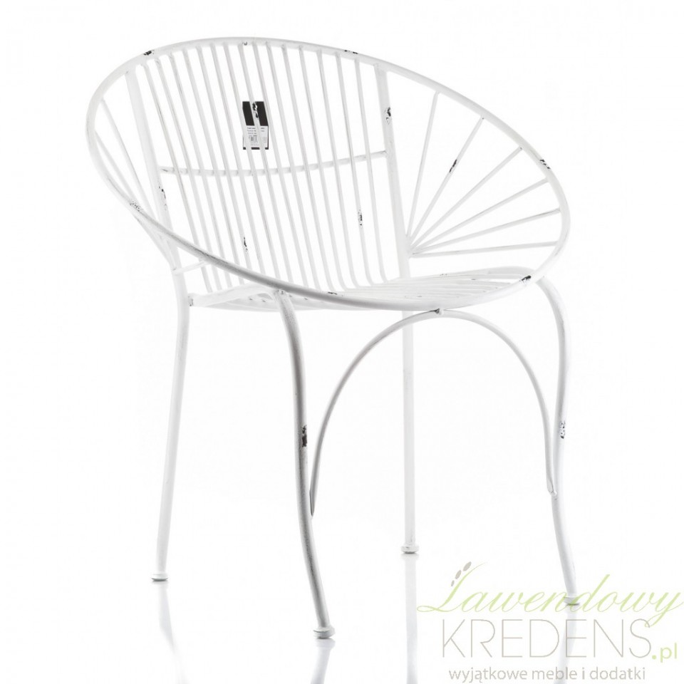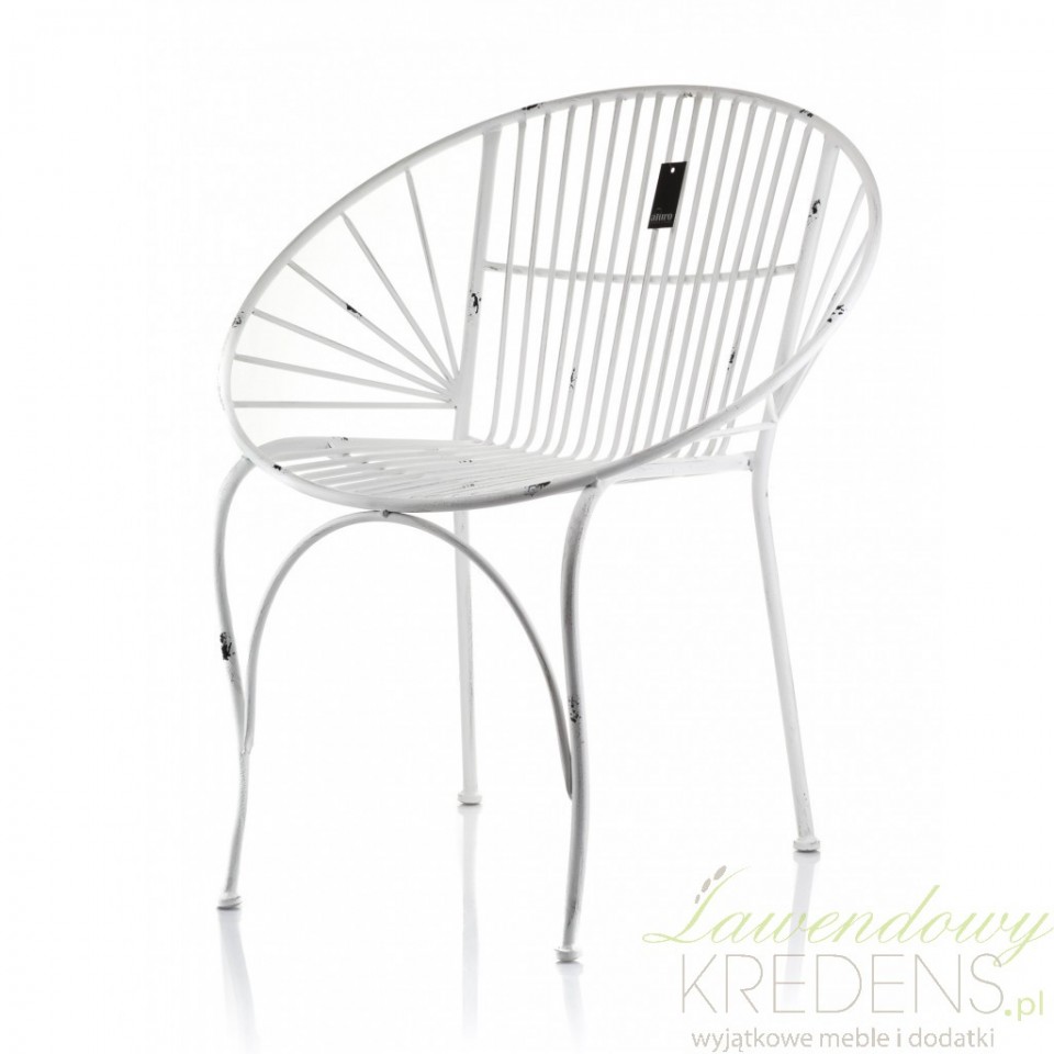 Stylowy fotel na metalowej ramie inspirowany prowansalskim wzornictwem i współczesnymi trendami. Wykonany z wysokiej jakości stopu metalu w delikatnym, białym odcieniu z licznymi odpryskami. Fotel z wygodnym siedziskiem i parciem z metalowych prętów opiera się na kształcie koła. Sprawdzi się w skandynawskich i francuskich kuchniach ale także na tarasie w komplecie z metalowym stołem.