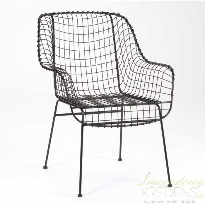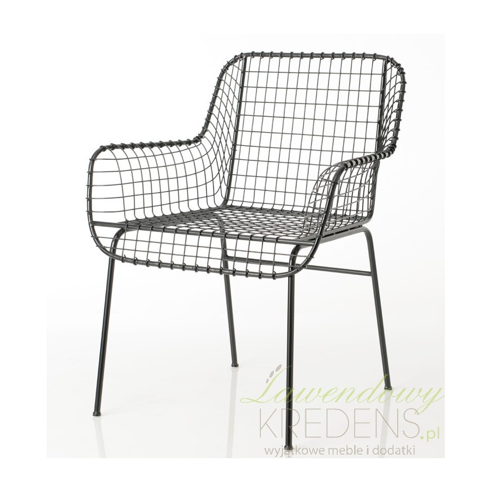 Typowo loftowy, metalowy fotel z wyprofilowanymi oparciami, ustawiony na czterech stabilnych nogach!