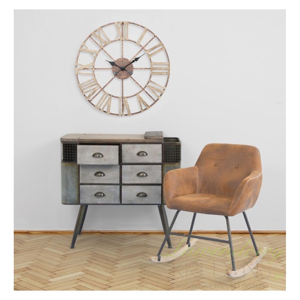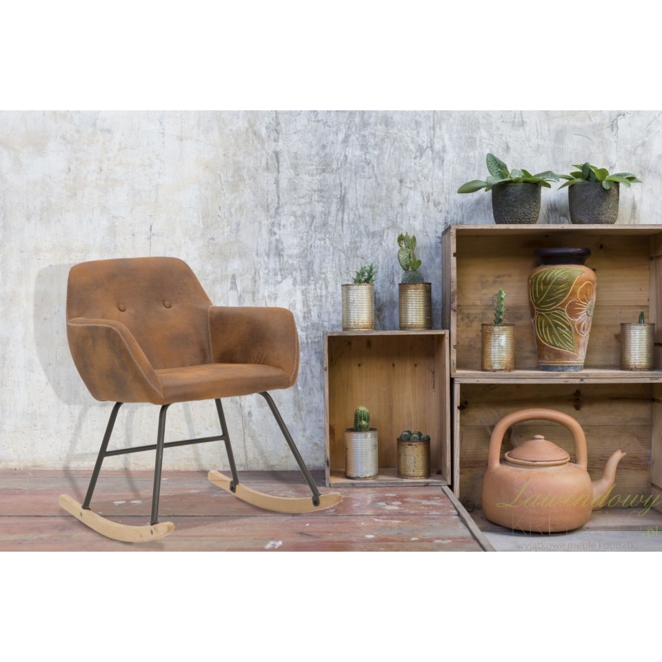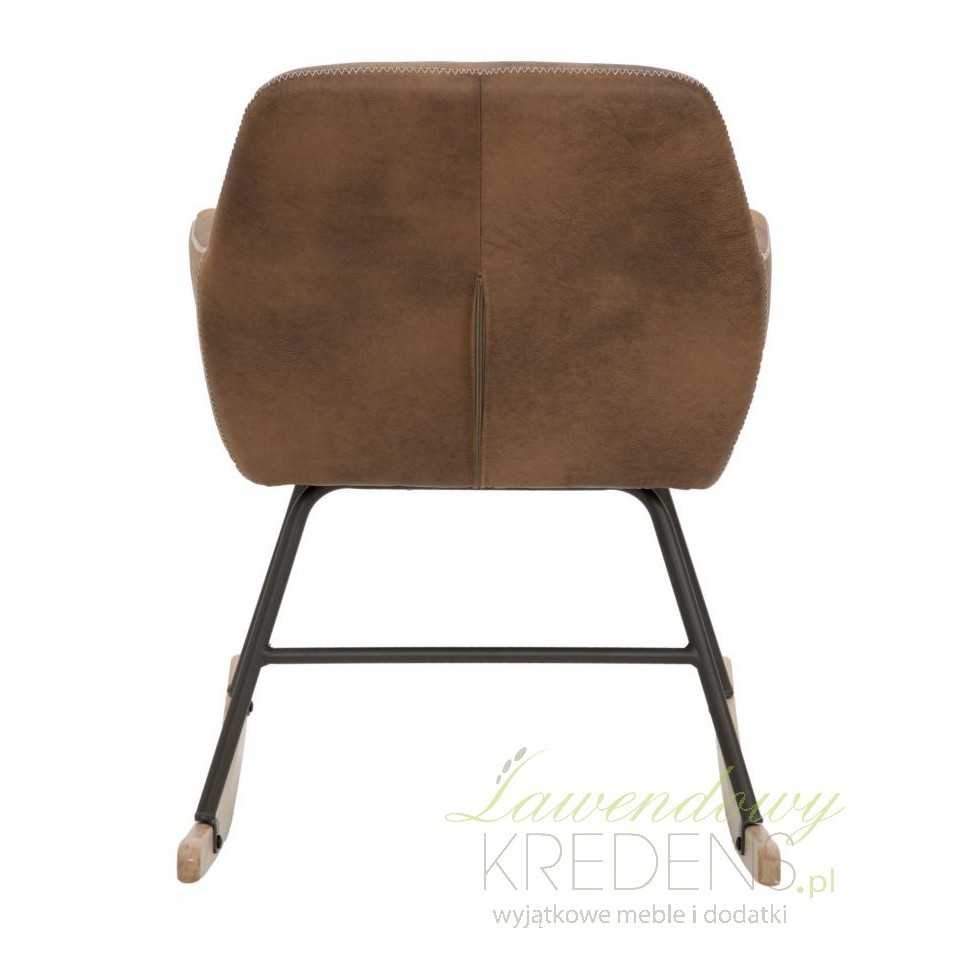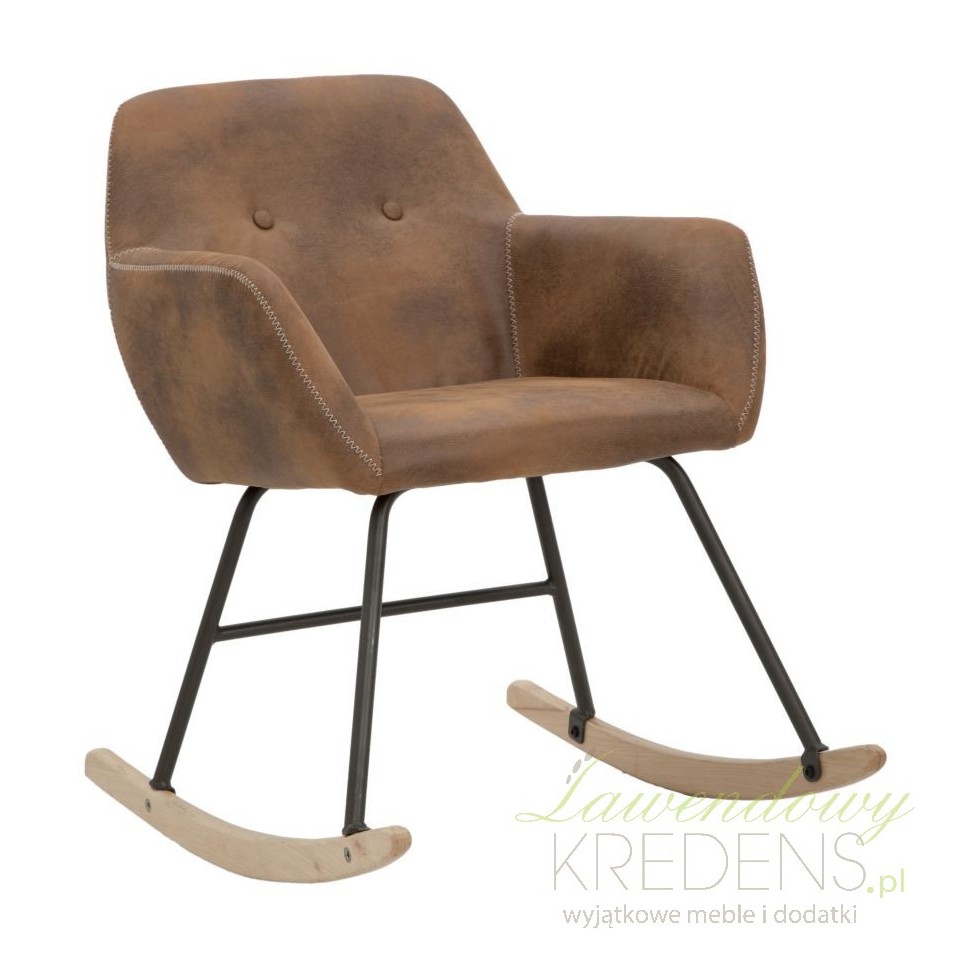 Ten drewniany fotel bujany to obiekt pożądania wszystkich miłośników popołudniowego relaksu. Nie ma się co dziwić, ponieważ jego efektowny wygląd wzbudza podziw, a walory użytkowe gwarantują komfortowy odpoczynek. Fotel bujany z kolekcji Metropolitan został wykonany z drewna i ekoskóry w pięknym, naturalnym kolorze brązu. Lekkie kołysanie fotela sprawia, że każdy się w nim z łatwością odpręży.