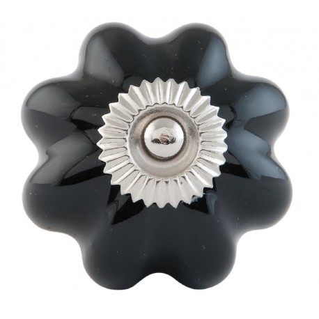 Gałki do mebli wykonane są z wysokiej klasy ceramiki w kolorze czarnym. Gałki meblowe mają kształt uroczego kwiatuszka, a jego środek stanowi srebrny metal. Uchwyty do mebli są bardzo poręczne i trwałe. Na pewno na długo posłużą w twoim domu.
