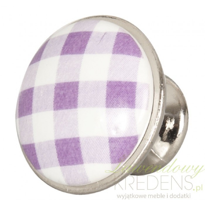 Ceramiczna gałka meblowa firmy Clayre & Eef w uroczą biało-fioletową kratkę!
