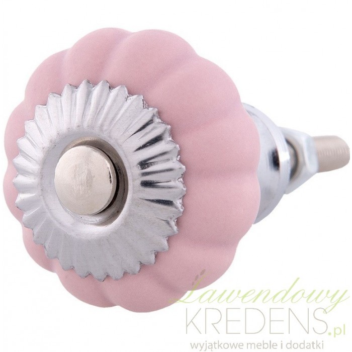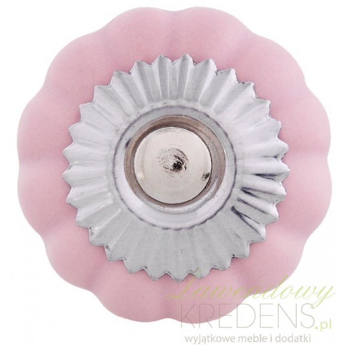 Prezentowana gałka meblowa w kształcie kwiatka jest ozdobiona srebrną aplikacja pośrodku. Gałka ozdobna jest różowa, a metalowe elementy podkreślają jej wyjątkowy design. Gałkę zamocujesz do mebla za pomocą długiej śruby i nakrętki. Doskonała do pokoju malej księżniczki, w którym przeważają białe, kremowe lub bezowe mebelki.