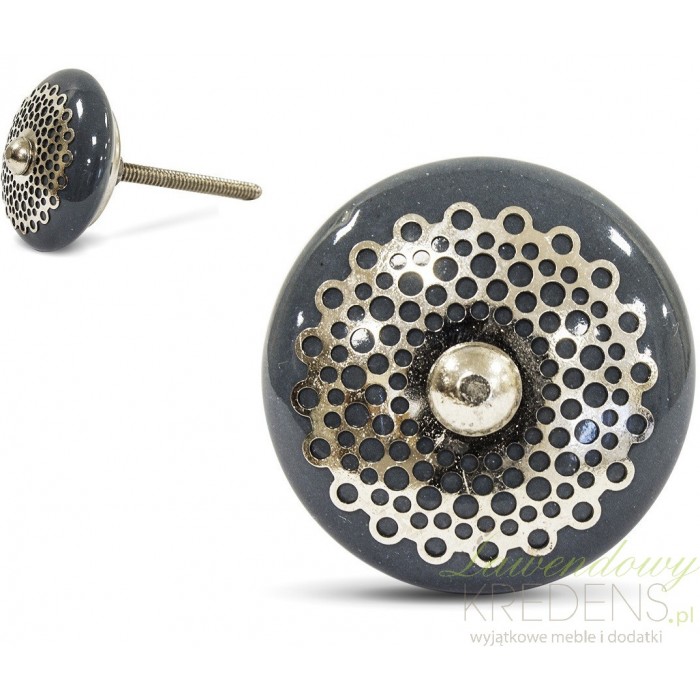 Gałka meblowa odpowiednio dobrana do stylu i koloru mebla może być jego ozdobą i tym samym odmienić wystrój wnętrza. Ta piękna gałka została wykonana z ceramiki i ozdobiona metalową, ażurową nakładką w kolorze srebrnym. Niezrównanie piękne i ozdobne gałki do mebli w różnych stylach znajdziesz w naszej ofercie. Zadbaj o swój dom z myślą, że to szczegół ma największe znaczenie.