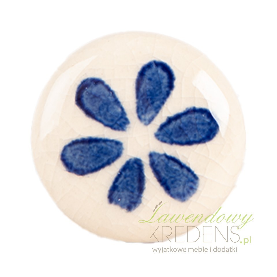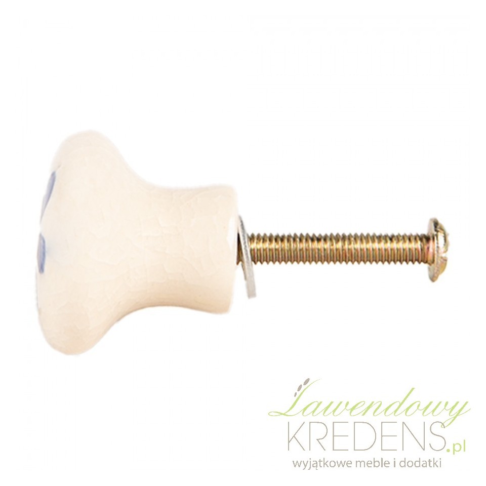 Ceramiczna gałka meblowa w odcieniach beżu i granatu to uroczy detal, który nada Twoim meblom charakteru. Ręcznie zdobiony motyw kwiatowy tworzy wyjątkowy, rustykalny klimat.