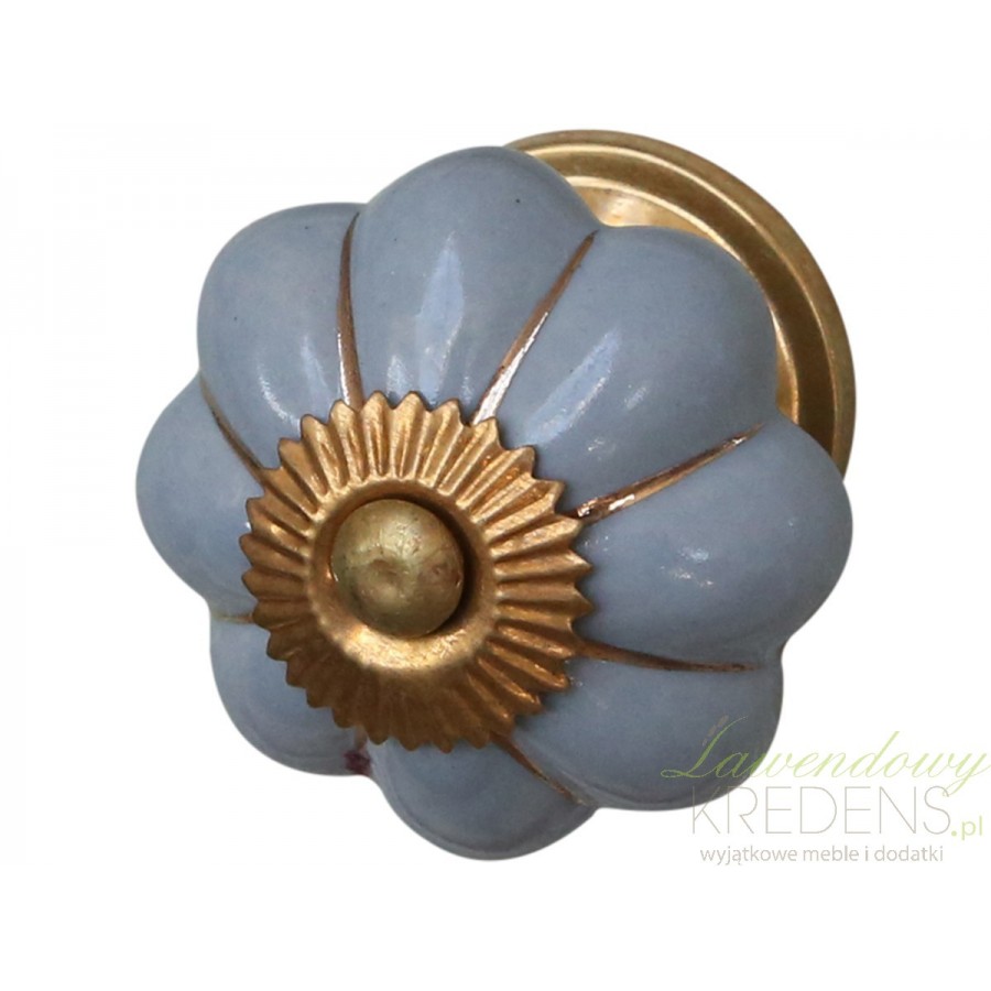 Niebieskie gałki do mebli z podreślającymi błękitną toń złotymi dodatkami to wspaniały pomysł na ożywienie nie tylko mebli, ale także całego wnętrza. Ośmiopłatkowy kwiat w kształcie którego uformowane zostały gałki meblowe pozwala na wygodne otwieranie i zamykanie półek i szuflad, dodatkowo będąc zaskakującą ozdobą!