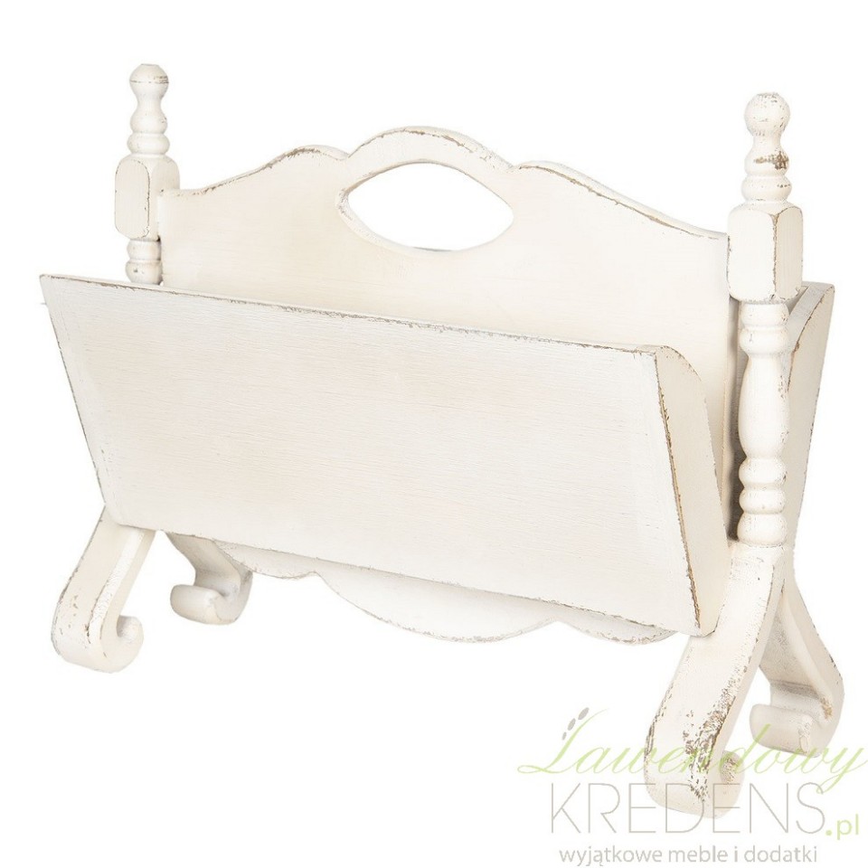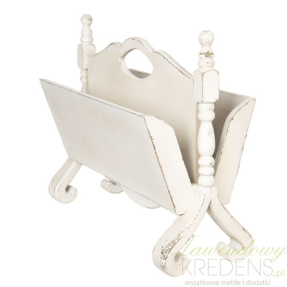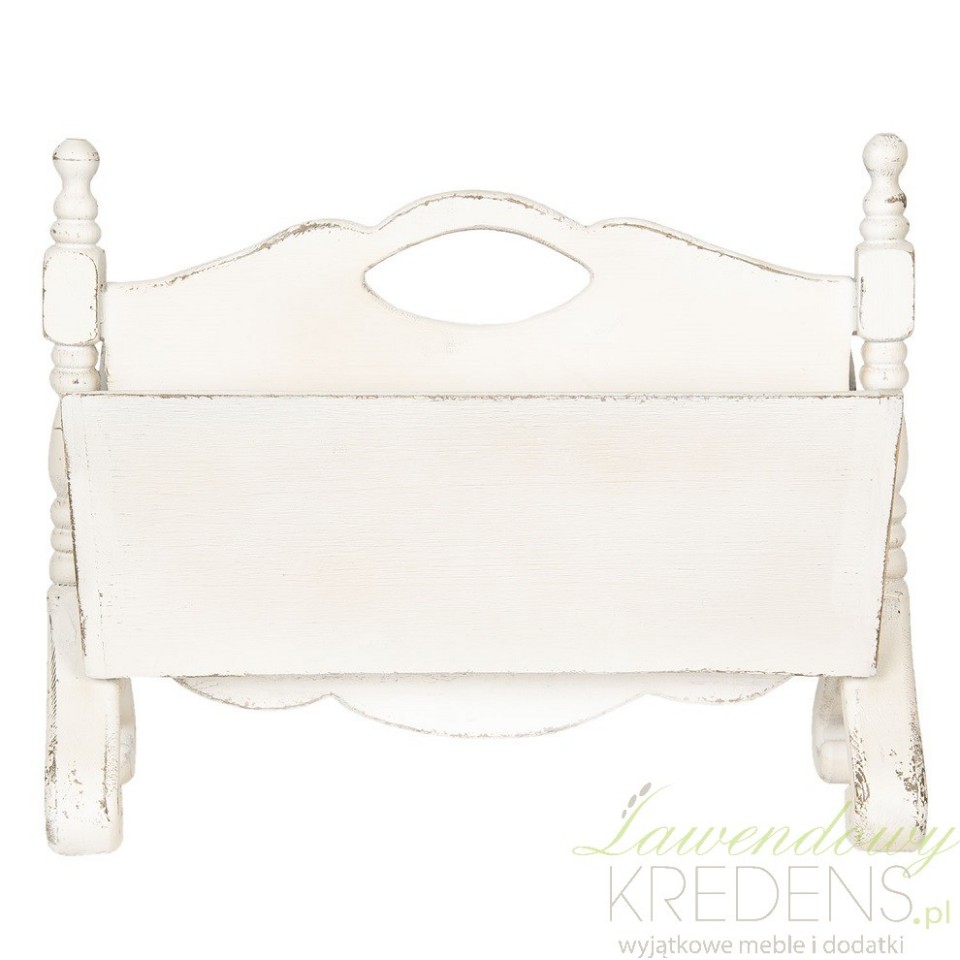 Drewniany gazetnik w stylu prowansalskim został zaprojektowany i wykonany przez holenderską markę Clayre&Eef. Jest oryginalnym rozwiązaniem, dzięki któremu przechowywanie prasy stanie się dużo łatwiejsze. Z powodzeniem możesz go wykorzystać również w poczekalniach i w przestrzeni biurowej dodając tym wnętrzom oryginalnego wyglądu. Styl prowansalski oferowanego przedmiotu podkreślają jasny kolor i widoczne przecierki.