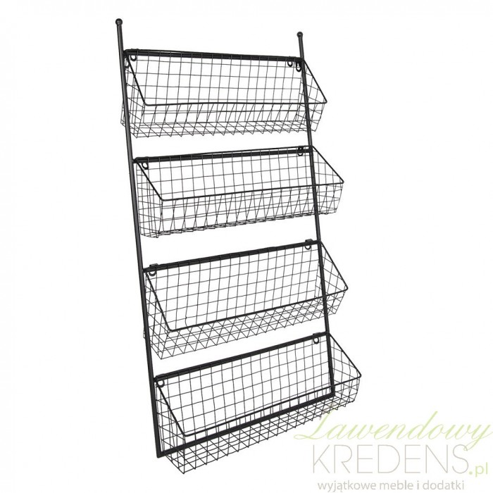 Kosze ścienne wykonane w całości z metalowych elementów zdominowały swoją funkcjonalnością wnętrza takie ja łazienki, kuchnie i biura. Cztery kosze na metalowym stelażu przydadzą się jako miejsce na kosmetyki, słoiki z przyprawami lub dokumenty. Sam zdecyduj gdzie przydadzą Ci się najbardziej. Meble w stylu industrialnym dzięki prostocie wykonania i surowej prezencji genialnie łączą się z różnorodnymi aranżacjami.
