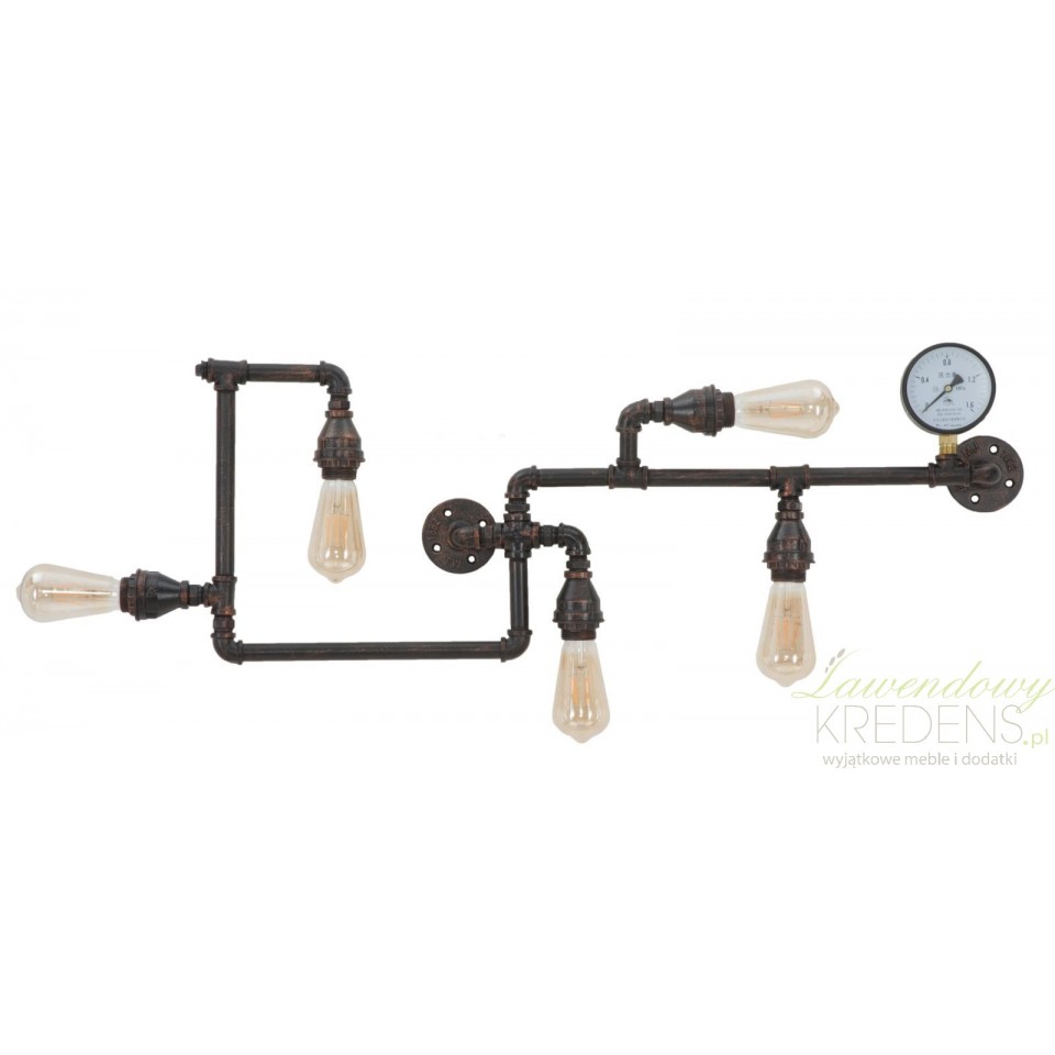 Niebanalny kształt przypominający skomplikowaną instalację hydrauliczną sprawia, że kinkiet w stylu industrialnym wiedzie prym wśród pozostałych lamp. Kinkiet industrialny Manhattan ma czarny kolor i aż sześć źródeł światła, które stanowią dekoracyjne, podłużne żarówki. Dodatkowym elementem przyciągającym uwagę jest imitacja ciśnieniomierza zamocowana przy jednym z ramion. Kinkiety od Mauro Ferretti oświetlą każde wnętrze lofotowe i industrialne!