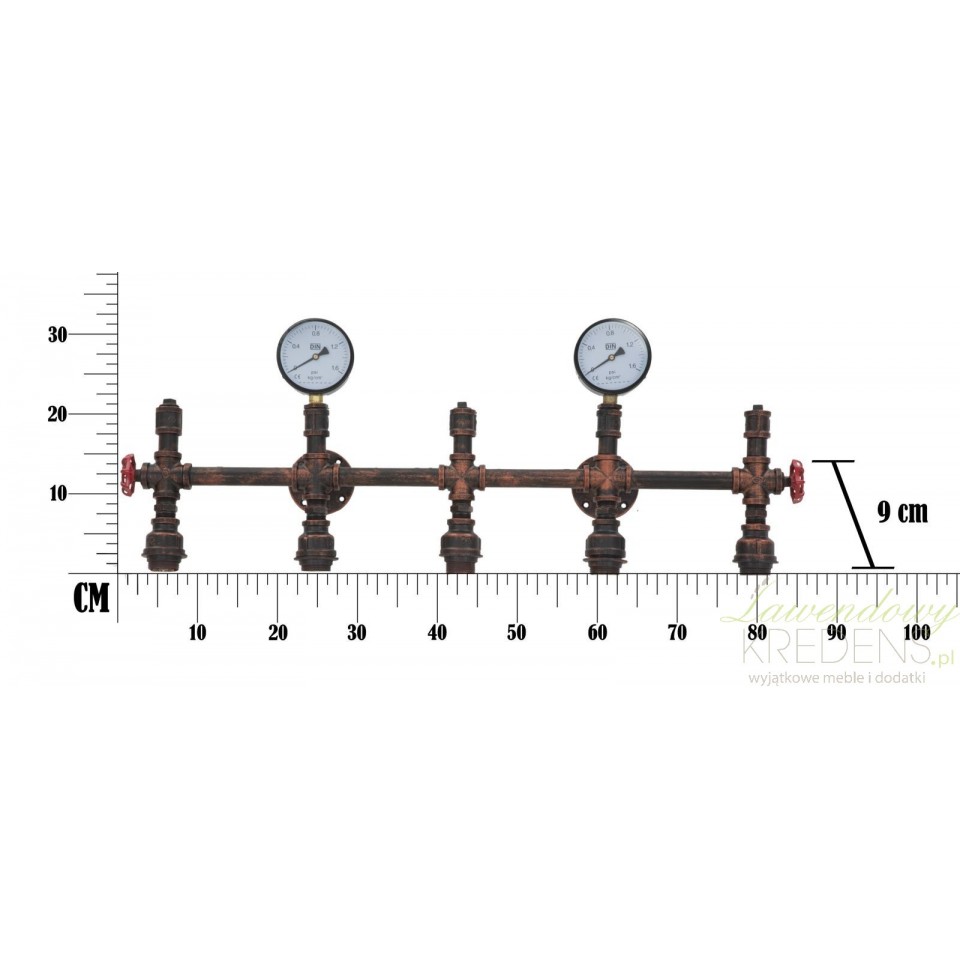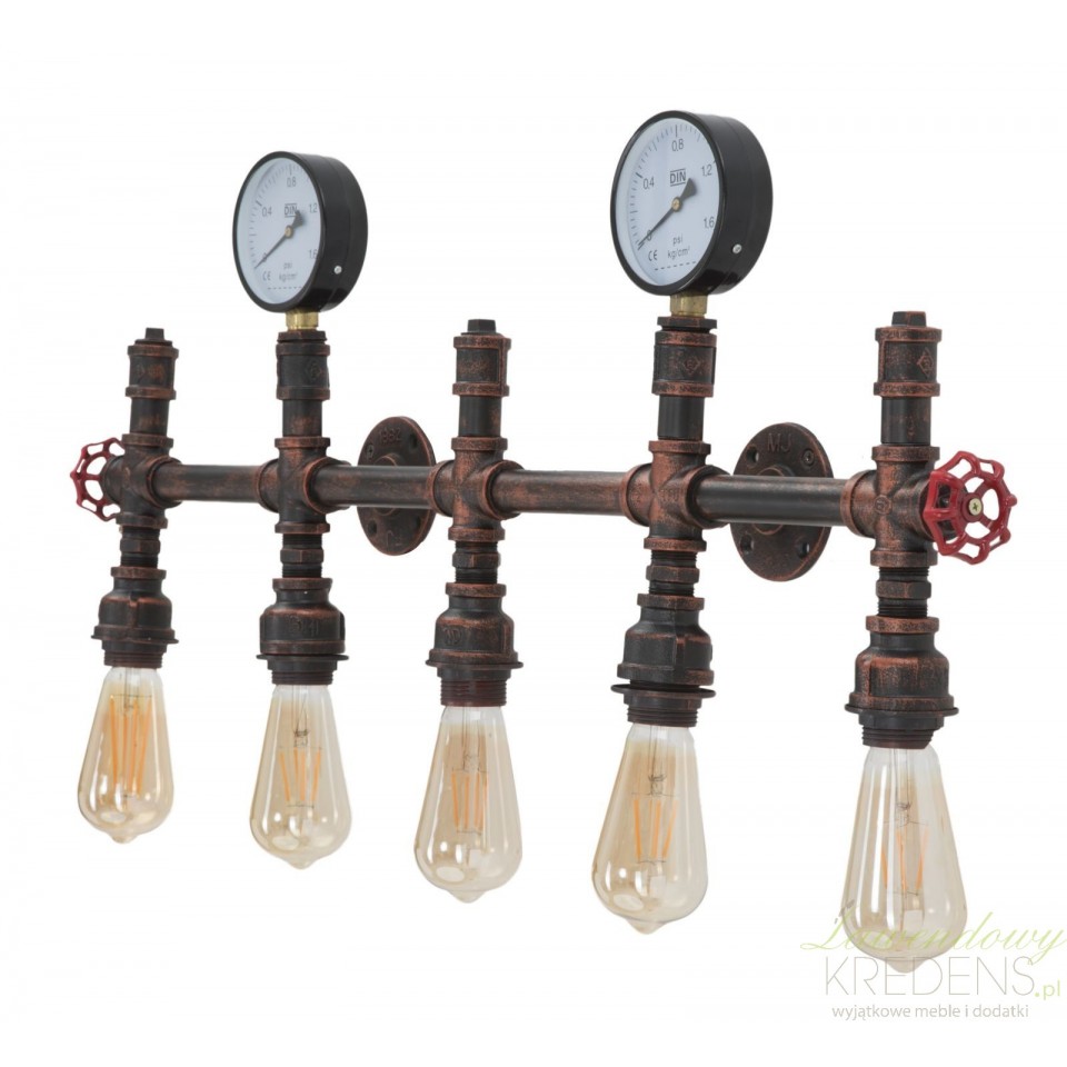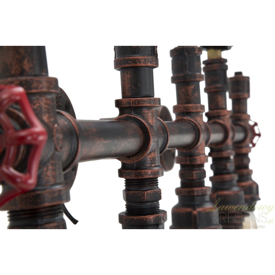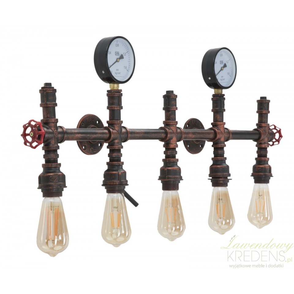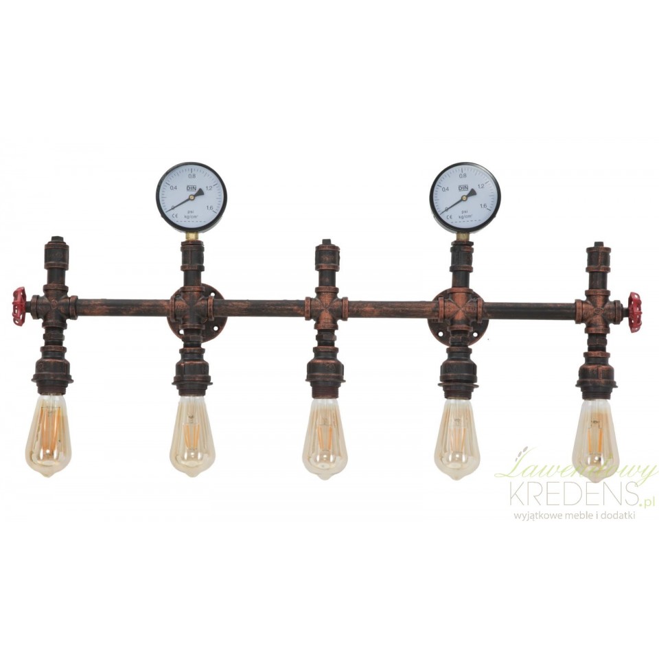 Ten oryginalny kinkiet industrialny to funkcjonalny i dekoracyjny element do rozmaitych wnętrz zaaranżowanych w stylu loft i industrialnym. Prezentowany kinkiet ścienny z metalu i szkła jest bardzo efektowny, ponieważ przypomina instalację hydrauliczną – wyposażony jest w pokrętła i imitacje dwóch ciśnieniomierzy. Projekt pochodzi z włoskiej pracowni firmy Mauro Ferretti, która urzeka kreatywnymi pomysłami na funkcjonalne dodatki do domu, będące jednocześnie jego ozdobami.