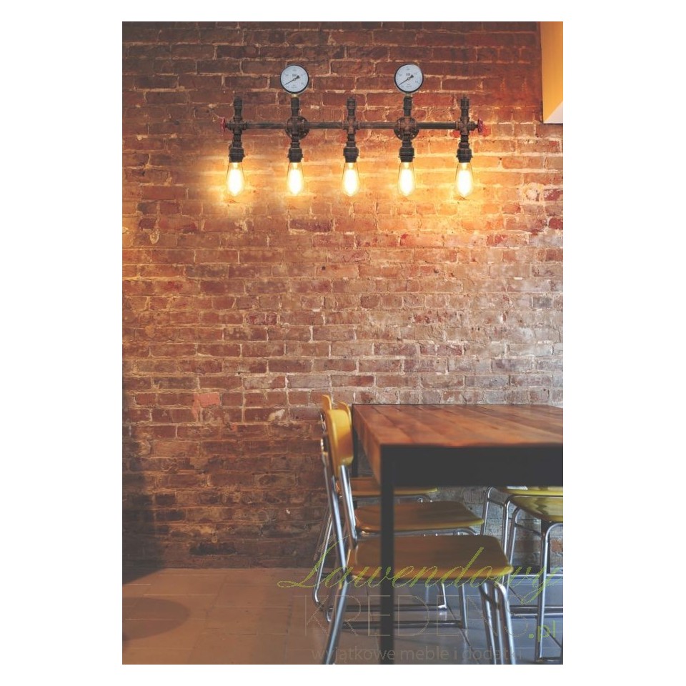 Podłużny, duży kinkiet industrialny został wykonany z metalu i wyposażony aż w pięć źródeł światła! Polecamy!