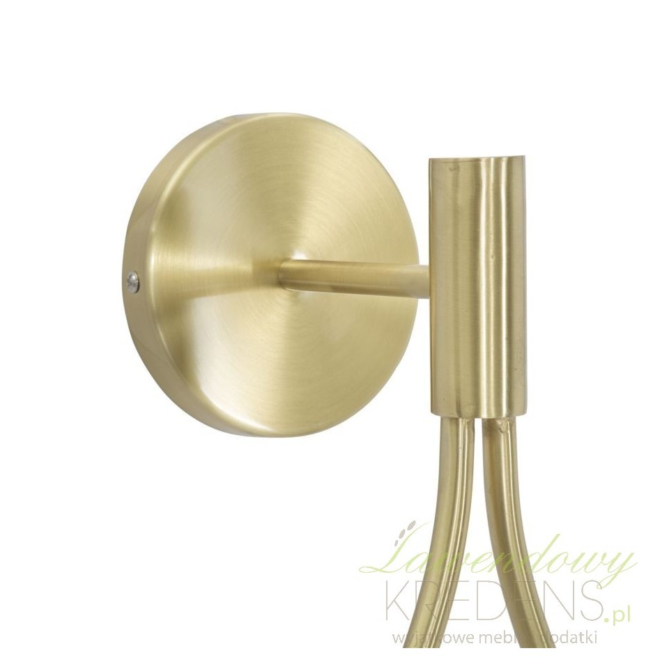 Oryginalny, złoty kinkiet ścienny nieco różniący się kształtem od tradycyjnych kinkietów nadal pozostaje eleganckim elementem oświetlenia wnętrza.