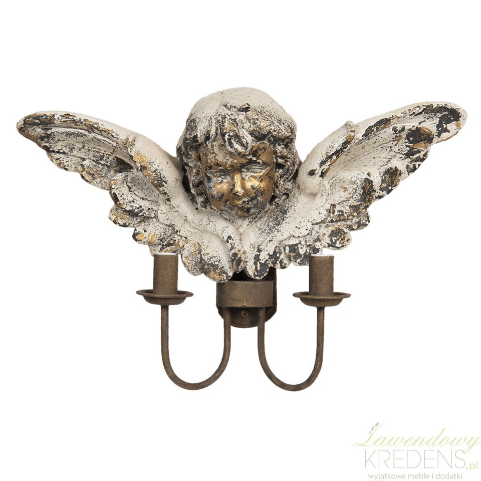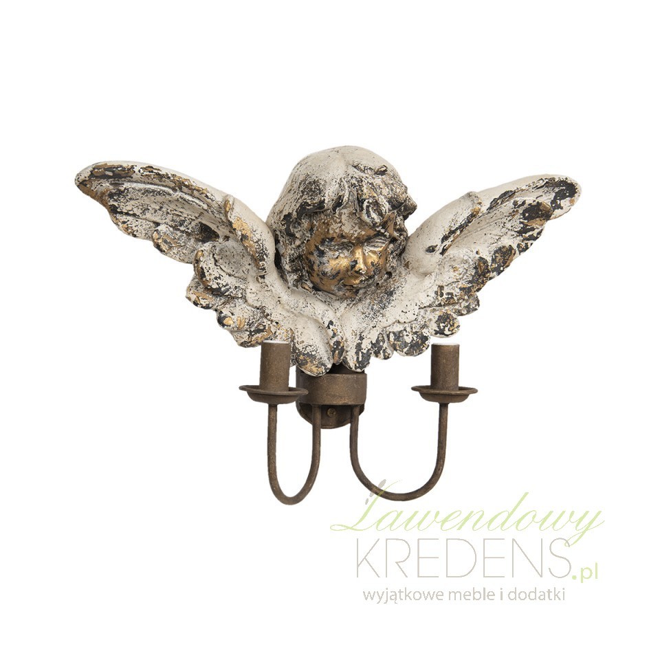 Wprowadź delikatne, rozświetlające wnętrze światło do swojego domu, zawieszając ten podwójny kinkiet na ścianie. Francuskie, antyczne wykończenie nadaje temu kinkietowi wygląd vintage, który doskonale pasuje do stylów aranżacyjnych shabby chic i prowansalskich. Połączenie gwintów w formie świeczek i figurki anioła sprawiają, że kinkiety w stylu prowansalskim to niepowtarzalna ozdoba każdej ściany.
