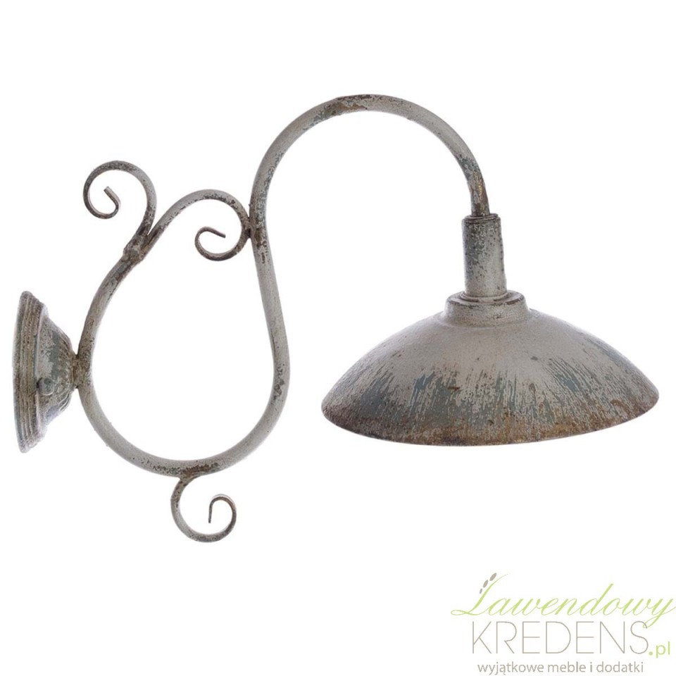 Kinkiet Vintage Prowansja Blanc Mariclò to elegancka propozycja oświetleniowa dla wnętrz w stylu francuskim, rustykalnym i shabby chic. Wykonany w całości z postarzanego metalu, z płaskim kloszem i delikatnymi, dekoracyjnymi okuciami, doskonale wpisuje się w estetykę nostalgicznej elegancji.