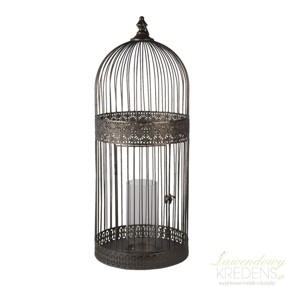 Wykonany z metalowych elementów, duży lampion klatka w kolorze antycznego mosiądzu przyda się do stworzenia orientalnego, starodawnego lub prowansalskiego klimatu w domu i na balkonie.