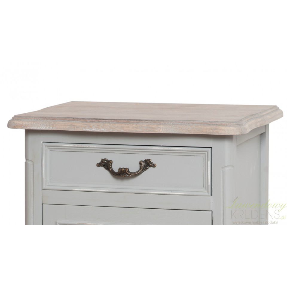 Doskonała do postawienia przy łózku szafka prowansalska z topolowego drewna, pięknie wyeksponowanego na blacie!