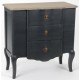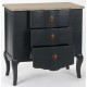 Pięknie nadająca wnętrzu prowansalski charakter czarna komoda z serii Lamani, zaopatrzona w trzy głębokie, genialnie ozdobione na frontach gałkami w kolorze złotym, szuflady. Taka forma komody to świetne rozwiązanie do dużych przestrzeni, które staną się Twoją ostoją i miejscem relaksu.