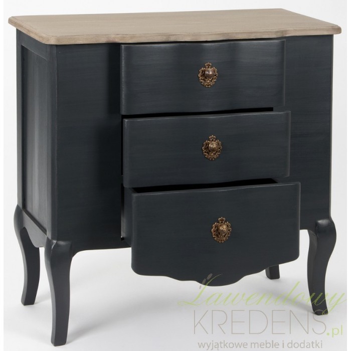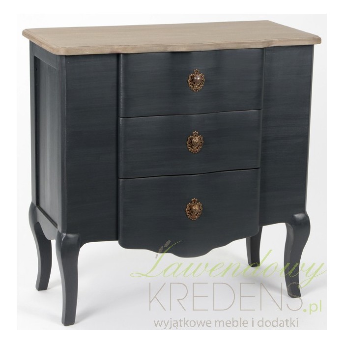 Bajeczna komoda prowansalska o matowej, czarnej powierzchni, z niesamiwitym blatem w kolorze naturalnego drewna!