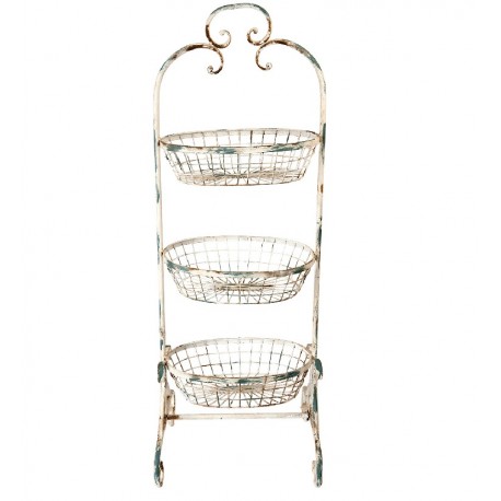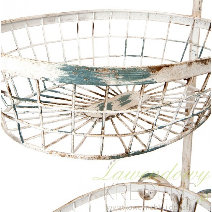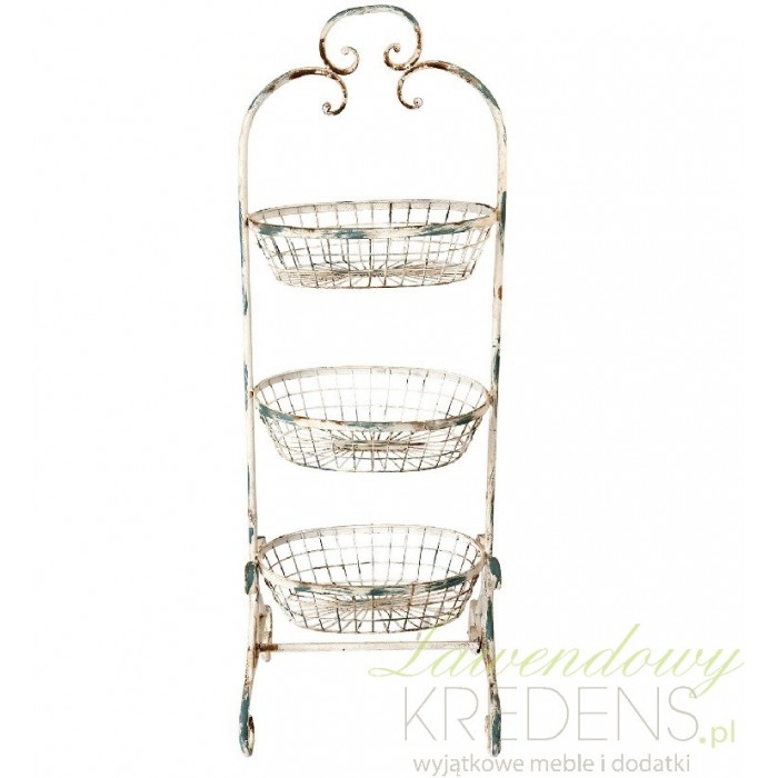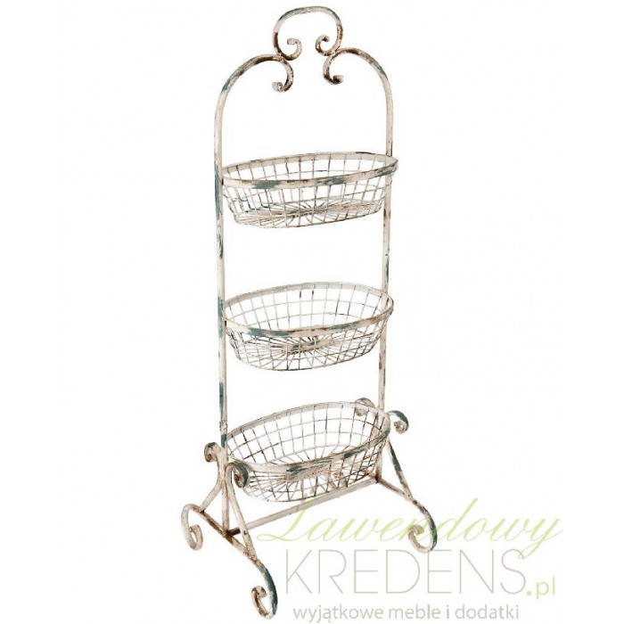 Stojak z koszami to jeden z tych uniwersalnych przedmiotów, który może spełniać wszelakie zastosowanie. Metalowe meble to ponadczasowe dodatki wnętrz, które nigdy nie wyjdą z mody. W naszej ofercie znajdziesz kremowy, przecierany stojak z trzema metalowymi koszami rodem z Prowansji, który możesz wykorzystać w łazience, kuchni jak i innych pomieszczeniach.