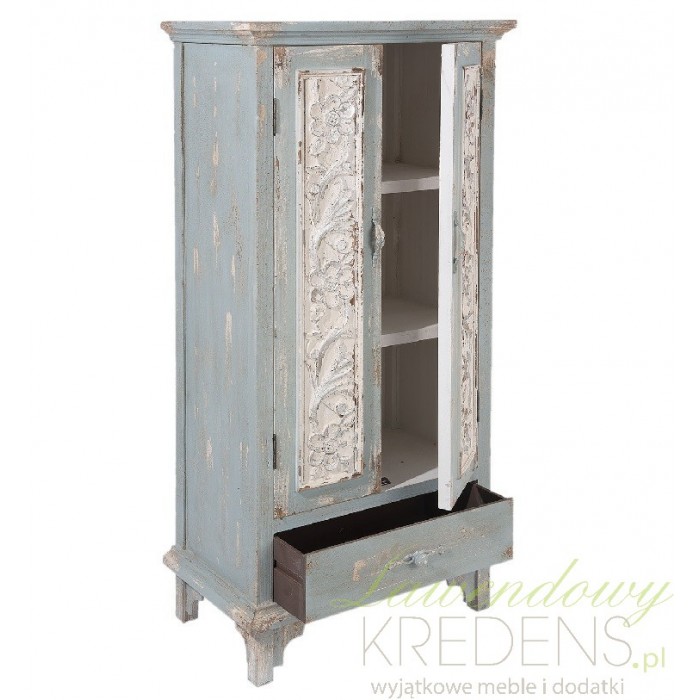 Duża komoda prowansalska błękitna jest częścią naszej kolekcji postarzanych mebli, zapewnia równowagę między stylami vintage i shabby chic. Malowane drewno, z którego wykonano ten spektakularny mebel jest bogate w rzeźbione dekory, co wydobywa z niego antyczny urok. Każdy element - drzwi, szuflada, nogi i półki - są niepowtarzalne. Komody w stylu prowansalskim są doskonałe zarówno jeśli chodzi o przechowywanie, jak i dekorowanie wnętrza. Zamów do swojego domu meble Clayre & Eef!