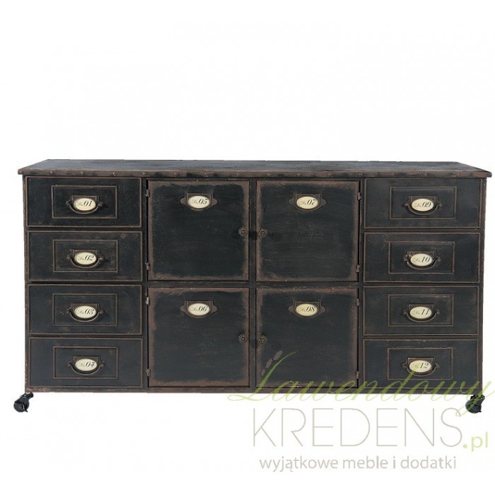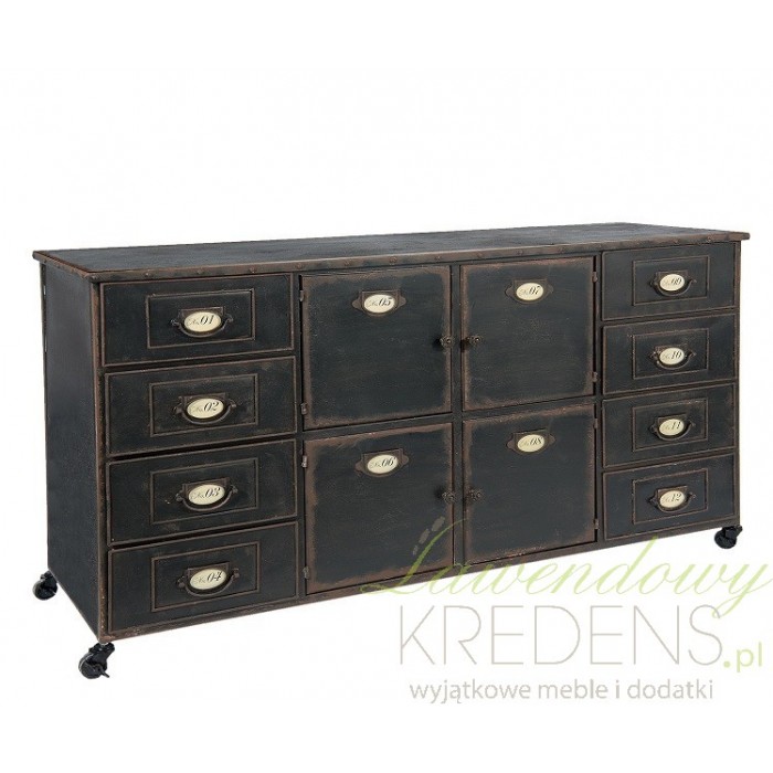 Zastanawiasz się, gdzie wylądują Twoje tekstylia lub bibeloty po przeprowadzce do nowego domu? Jeżeli podoba Ci się styl industrialny, komoda metalowa w ciemnym kolorze będzie świetnym miejscem na niezbędne przedmioty, ale też mocniej zaakcentuje charakter wnętrza. Ta komoda industrialna posiada osiem mniejszych i cztery większe szuflady oznaczone ponumerowanymi tabliczkami. Przemyślany design komody w stylu industrialnym sprawia, że mebel świetnie sprawdza się w różnego typu pomieszczeniach mieszkalnych.