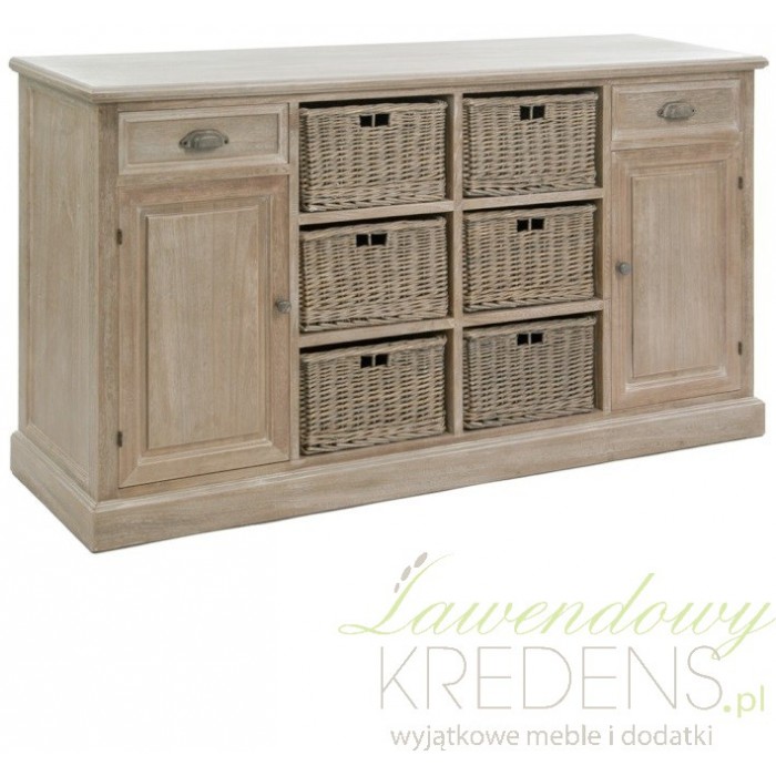 Duża komoda prowansalska to mebel wykonany z ciemnego drewna z jasnymi bieleniami widocznymi na całej jego powierzchni. Komoda bielona to mebel, który zalecamy ustawić w salonie czyli w miejscu gdzie każde wolne miejsce komody takie jak dwie szafki, szuflady i plecione kosze znajdą w mgnieniu oka swoje przeznaczenie. Meble prowansalskie to zaprojektowane przez miłośników domowego ogniska i rodzinnego wnętrza elementy wyposażenia wnętrza. Wykorzystaj meble bielone z ozdobnymi i funkcjonalnymi koszami w swoim wnętrzu i ciesz jej zaletami przez długie lata.
