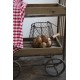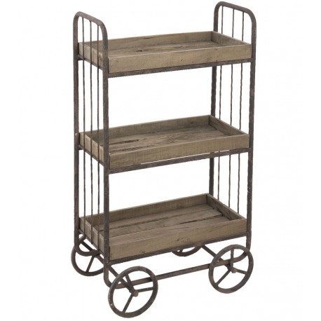 Regał industrialny wygląda jak wózek z drewnianymi skrzynkami. To mebel, w którym zadbano aby każdy szczegół przypominał o antycznym klimacie.
