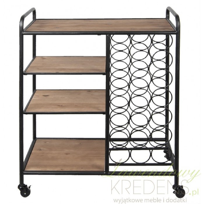 Komoda na wino pochodzenia francuskiego została zrobiona z drewna i metalu. Komoda industrialna wyposażona jest w metalowy stelaż z miejscem na kilkanaście butelek z winem oraz trzy półki. Jej funkcjonalność wzmacniają cztery kółka i poręczne uchwyty na bokach. Jesteśmy przekonani, że komoda świetnie sprawdzi się na wyposażeniu salonu oraz ekskluzywnej sali bankietowej. Zobacz również pozostałe meble w stylu industrialnym z naszej oferty!