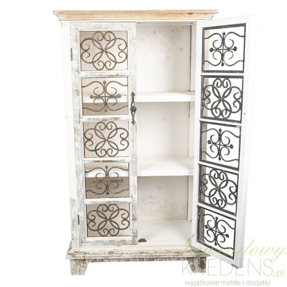 Wysoka, postarzana komoda w stylu prowansalskim będzie meblem odpowiedzialnym za odpowiedni nastrój i klimat w Twoim salonie, jadalni lub w przedpokoju. Głównym elementem dekoracyjnym tego mebla są metalowe uformowania znajdujące się na drzwiach komody w stylu prowansalskim. Ponadto, wrażenie robi prosta forma mebla będąca połączeniem jasnego korpusu z brązowym blatem i krótkimi nóżkami. Wybierz meble prowansalskie i ciesz się z urządzania domu jak nigdy wcześniej!