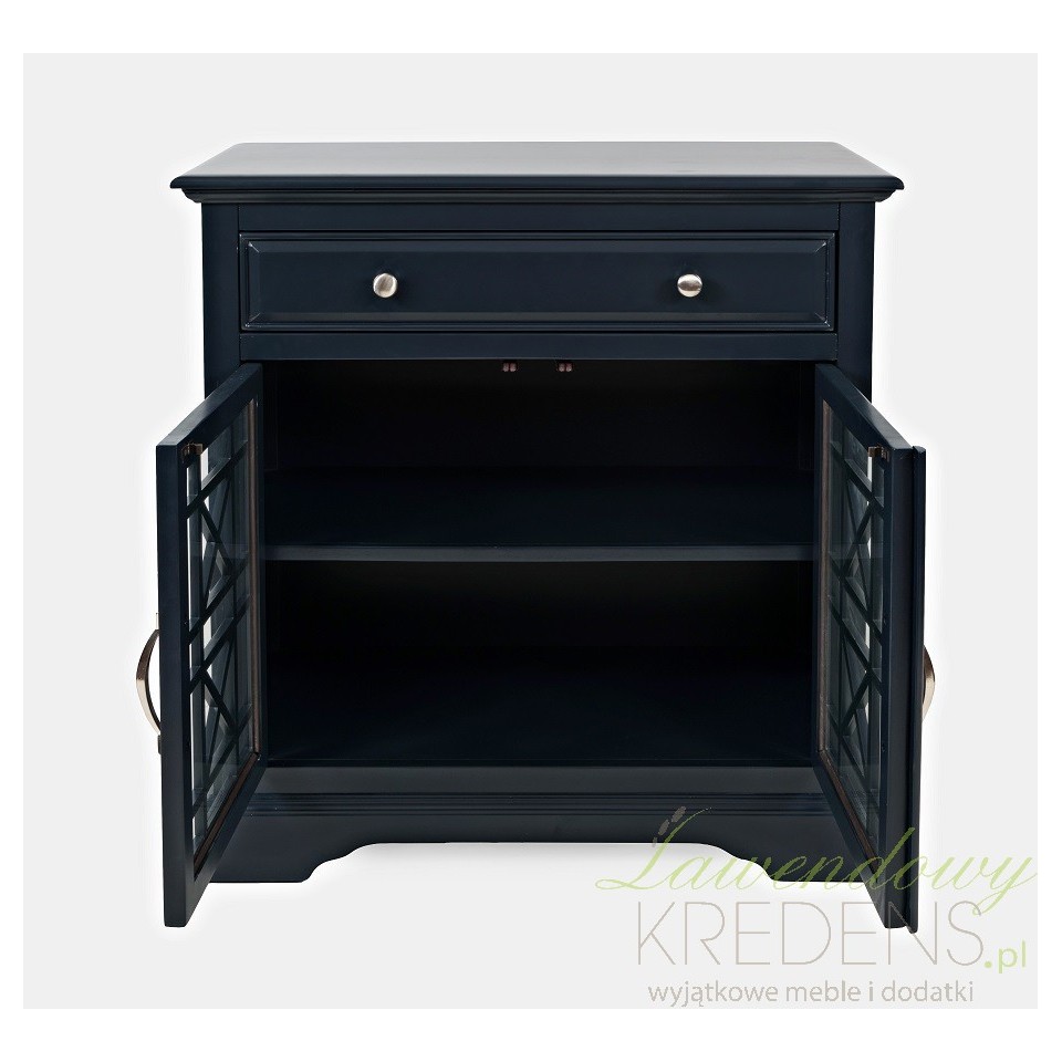 Komoda Avola reprezentuje francuski styl połączony z niezbędnym w każdym domu miejscem do przechowywania. Prezentowana szafka ma częściowo przeszklone drzwi z krzyżującymi się szprosami, które nadają jej klasyczny wygląd. Wykonane z drewna akacji i mdf, meble Avola są wykończone w ciemnym kolorze ze srebrnymi uchwytami, które wzbudzają zainteresowanie wizualne. Meble Livin Hill zapewniają dużo miejsca, aby schować dodatkowe naczynia, drobiazgi i nie tylko, dzięki czemu przedmioty pozostają wolne od kurzu.