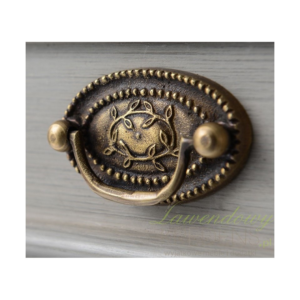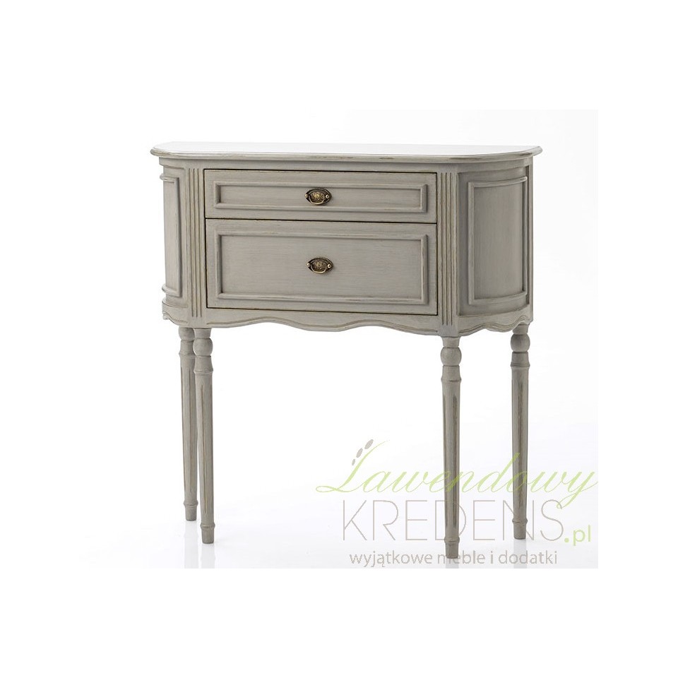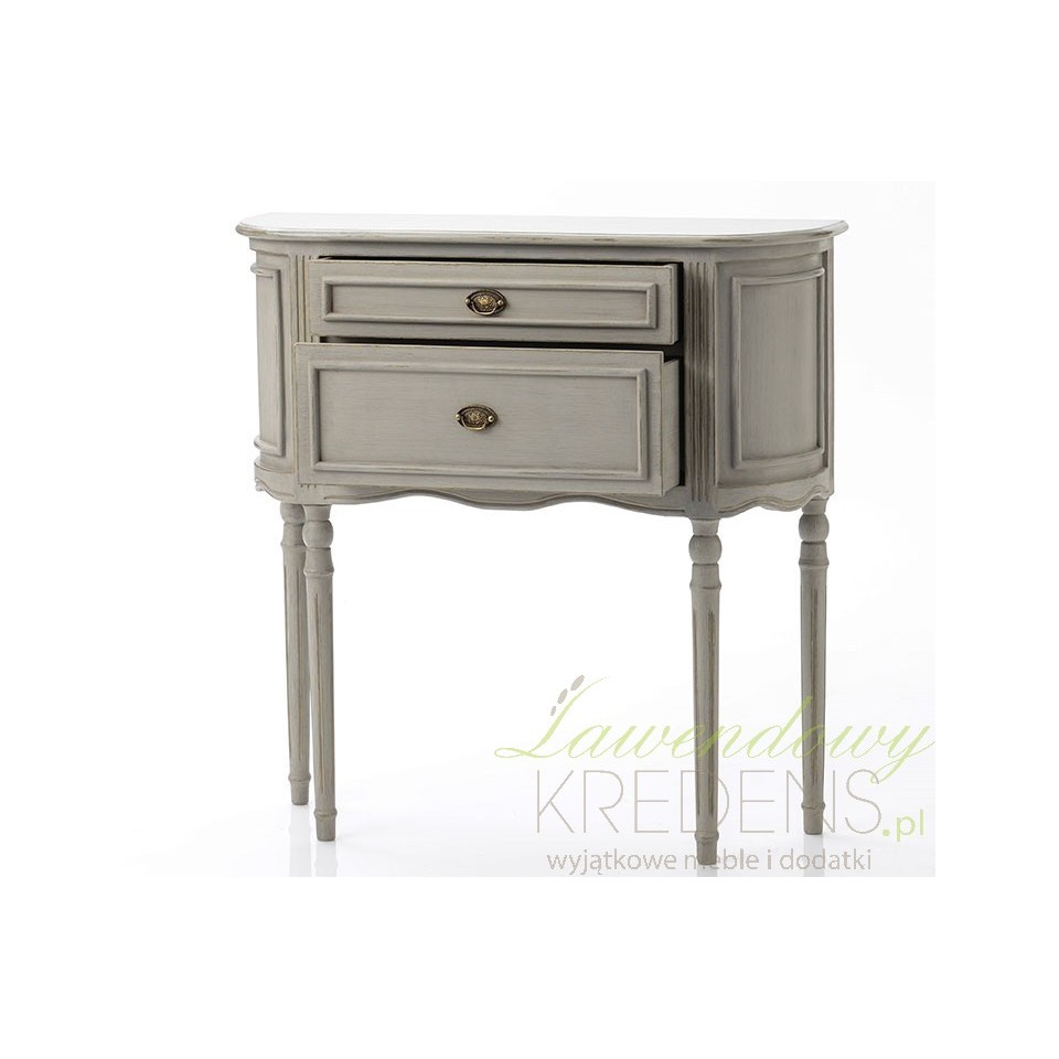 Bogactwo kolekcji mebli Luis daje niezliczone możliwości aranżacji wszystkich wnętrz w Twoim domu. Komoda w stylu francuskim może wzbogacić sypialnię, salon oraz pokój dzienny. Szara komoda wyposażona jest w 2 szuflady różniące się wysokością, oraz cztery smukłe nogi z subtelnymi rzeźbieniami. Metalowe uchwyty z kwiatowym wzorem zdobią fronty szuflad, nadając bryle efekt majestatyczności. Polecamy!