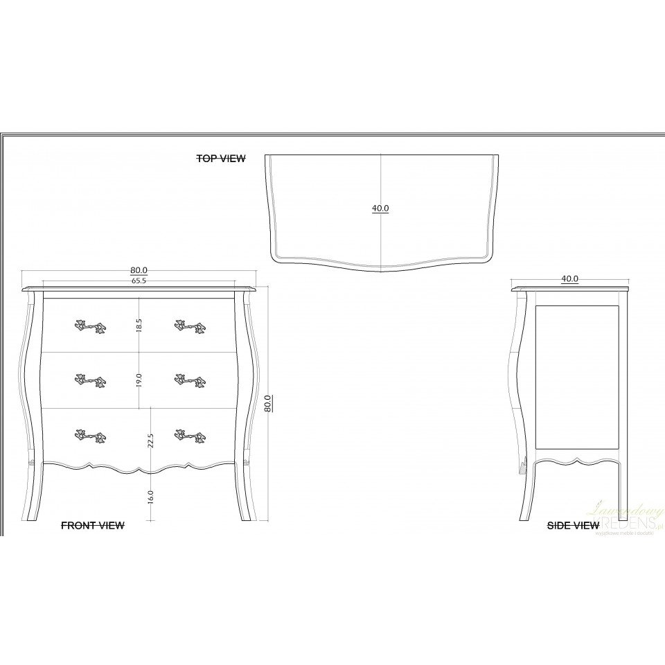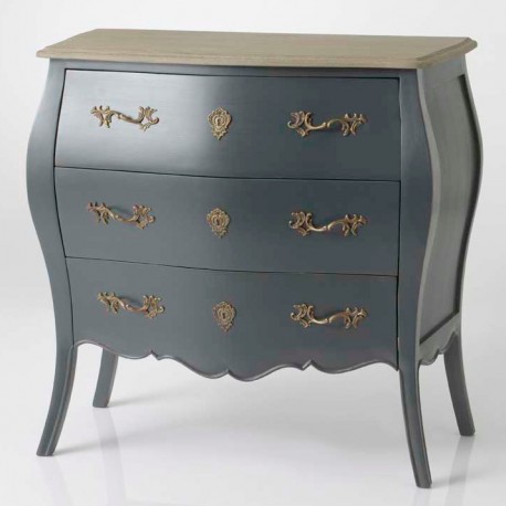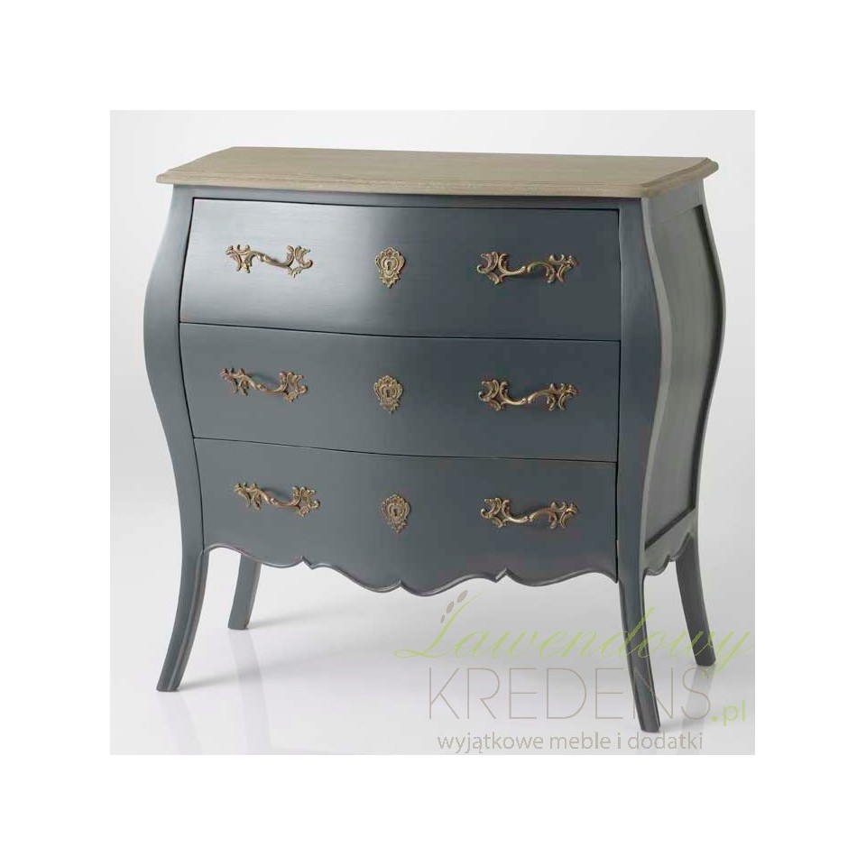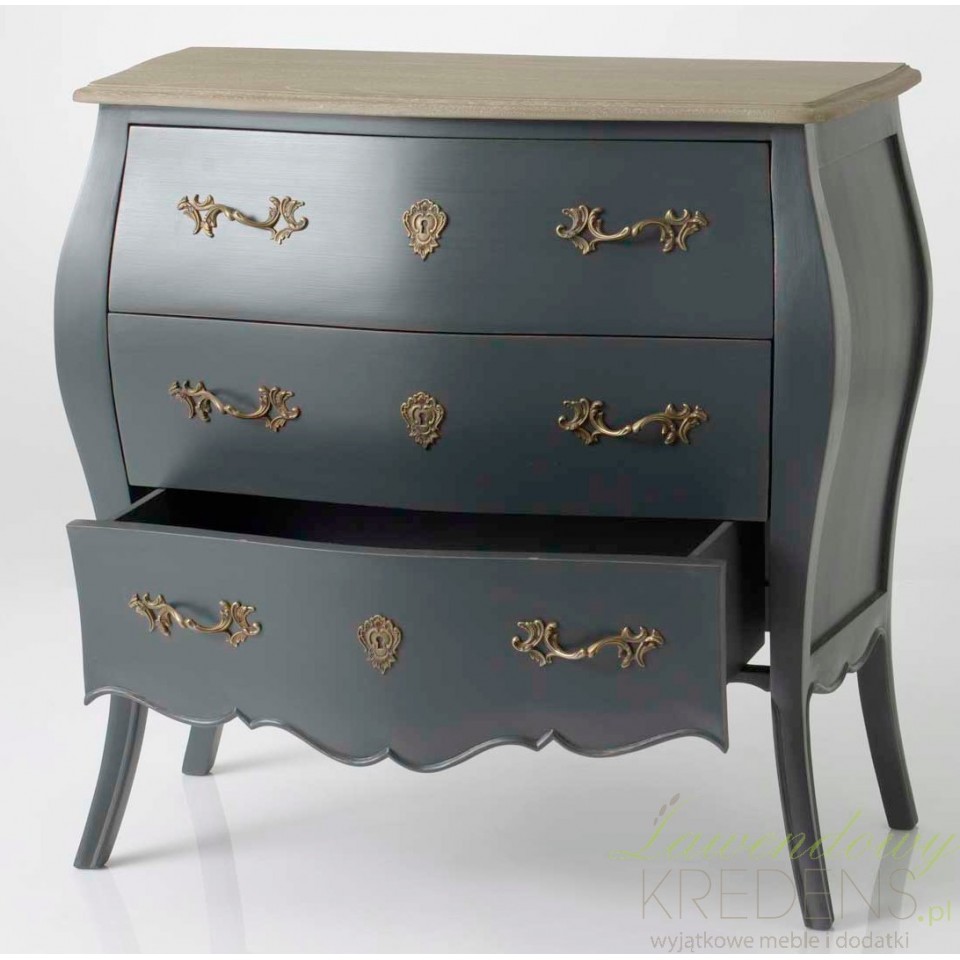 Zaprojektowana przez francuskiego producenta komoda w stylu prowansalskim w kolorze ciemnego grafitu posiada blat w kolorze brązowym.