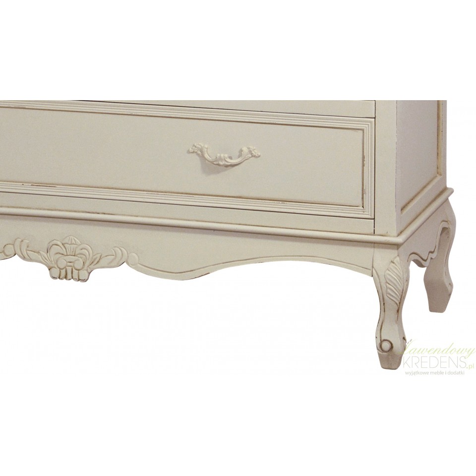 Starannie wykonana z najwyższej jakości surowców - komoda prowansalska Savona ma pojemne szuflady z dekoracyjnymi uchwytami. Jeśli jesteś jednym z wielbicieli stylu francuskiego, romantycznego lub country, w naszym sklepie znajdziesz najpiękniejsze komody w stylu prowansalskim! Pojemna komoda z licznymi szufladami prezentuje zdecydowanie tradycyjny styl i jest stylizowana w większości ręcznie. Stolarz połączył tutaj elementy w kolorze kremowym i naturalnym brązowym, co nadaje meblowi świeży wygląd: idealny, aby Twoje wnętrze wydawało się jasne, ciepłe i przyjemne.