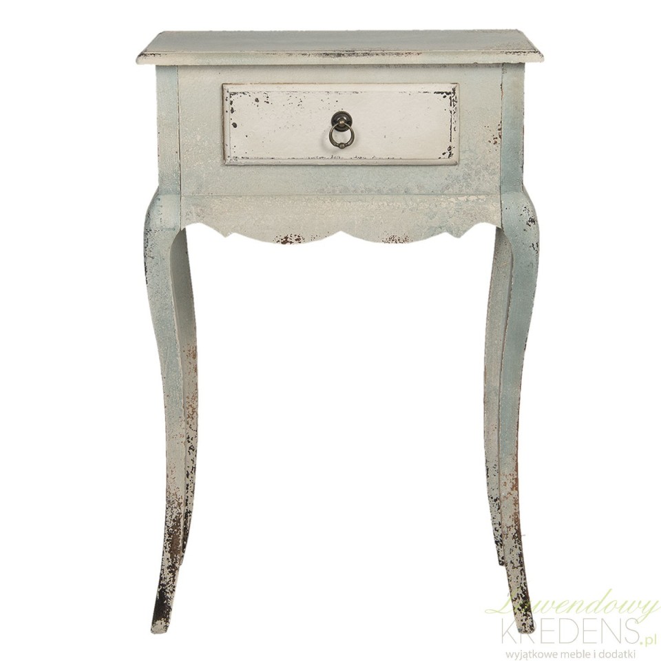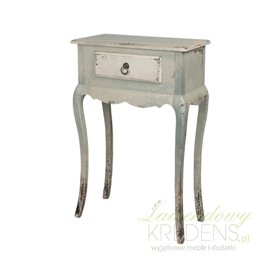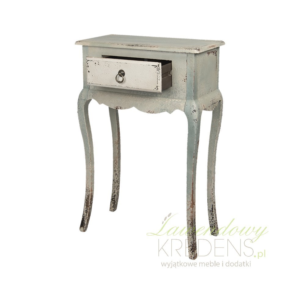 Stolik prowansalski z widocznymi odpryskami i przetarciami powstał w oparciu o antyczne i prowansalskie wzorce. Posiada jedną szufladkę.