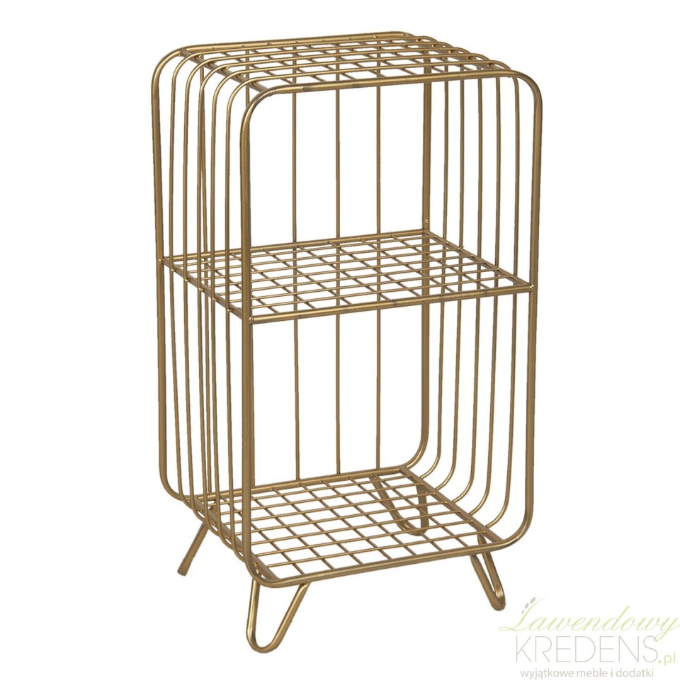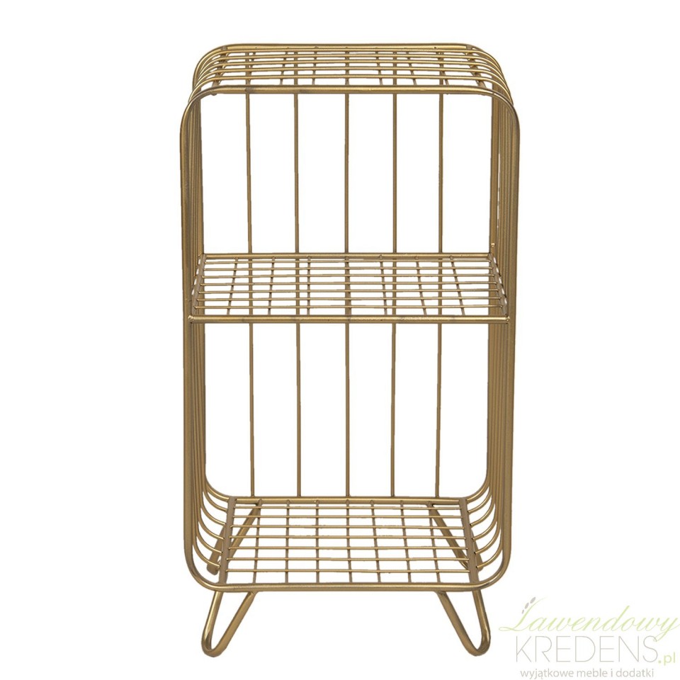 Metalowa szafka, emanująca eleganckim charakterem, wyposażona jest w półkę i zabudowana została po bokach pionowymi szprosami. Kompaktowy rozmiar tworzy świetną przestrzeń na książki, ramki na zdjęcia i doniczki z kwiatami. Złote meble metalowe są doskonałymi, praktycznymi meblami do przechowywania i ekspozycji, sprawdzają się w roli szafek nocnych i jako miejsce na dokumenty. Podwyższone nóżki lekko unoszą najniższą półkę i zapewniają stabilne podparcie całej konstrukcji.