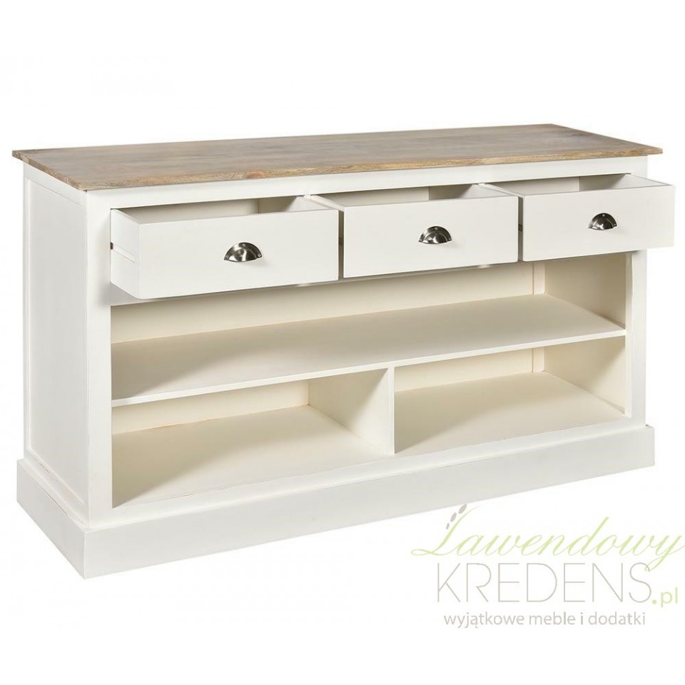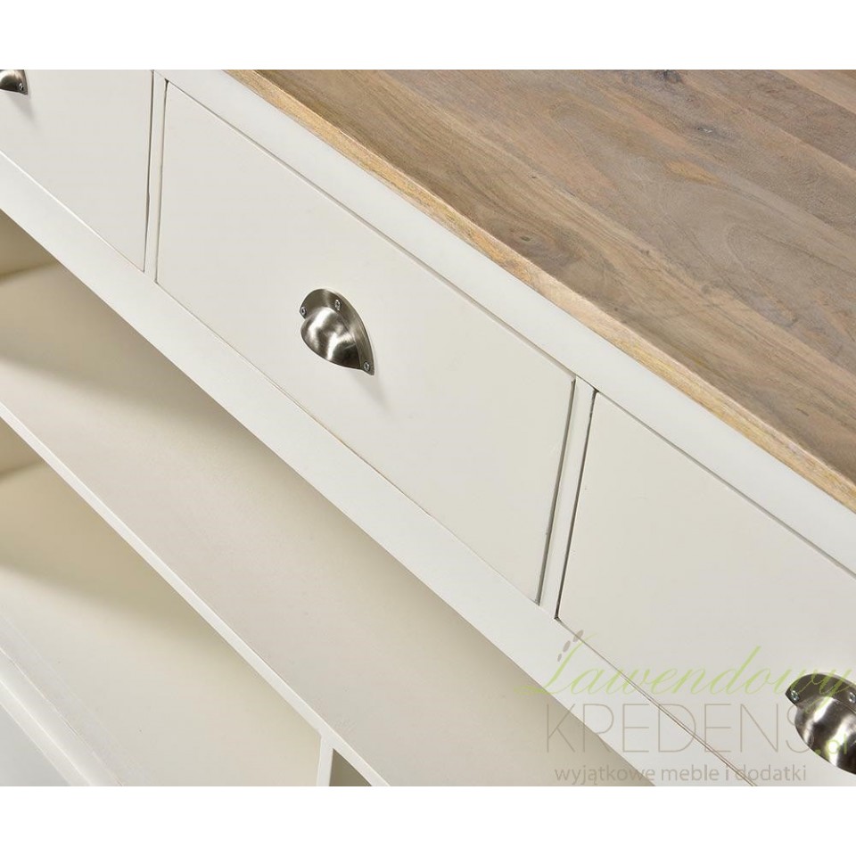Komoda Belldeco Bristol to mebel, który oferuje miejsce do przechowywania nie tylko w szufladach ale również na półkach o różnej długości. Mebel pozbawiony jest zbędnych zdobień, za to przykuwa uwagę eleganckim wykończeniem i spójnym połączeniem kolorystycznym bieli z brązem. Komody w stylu prowansalskim z kolekcji Bristol to ponadczasowe i klasyczne meble pasujące do aranżacji prowansalskich, francuskich i skandynawskich. Komody Belldeco to wyjątkowe komody prowansalskie, które doskonale komponują się z każdą kolorystyką, dlatego możesz ustawić na nich dowolne dekoracje i dodatki.