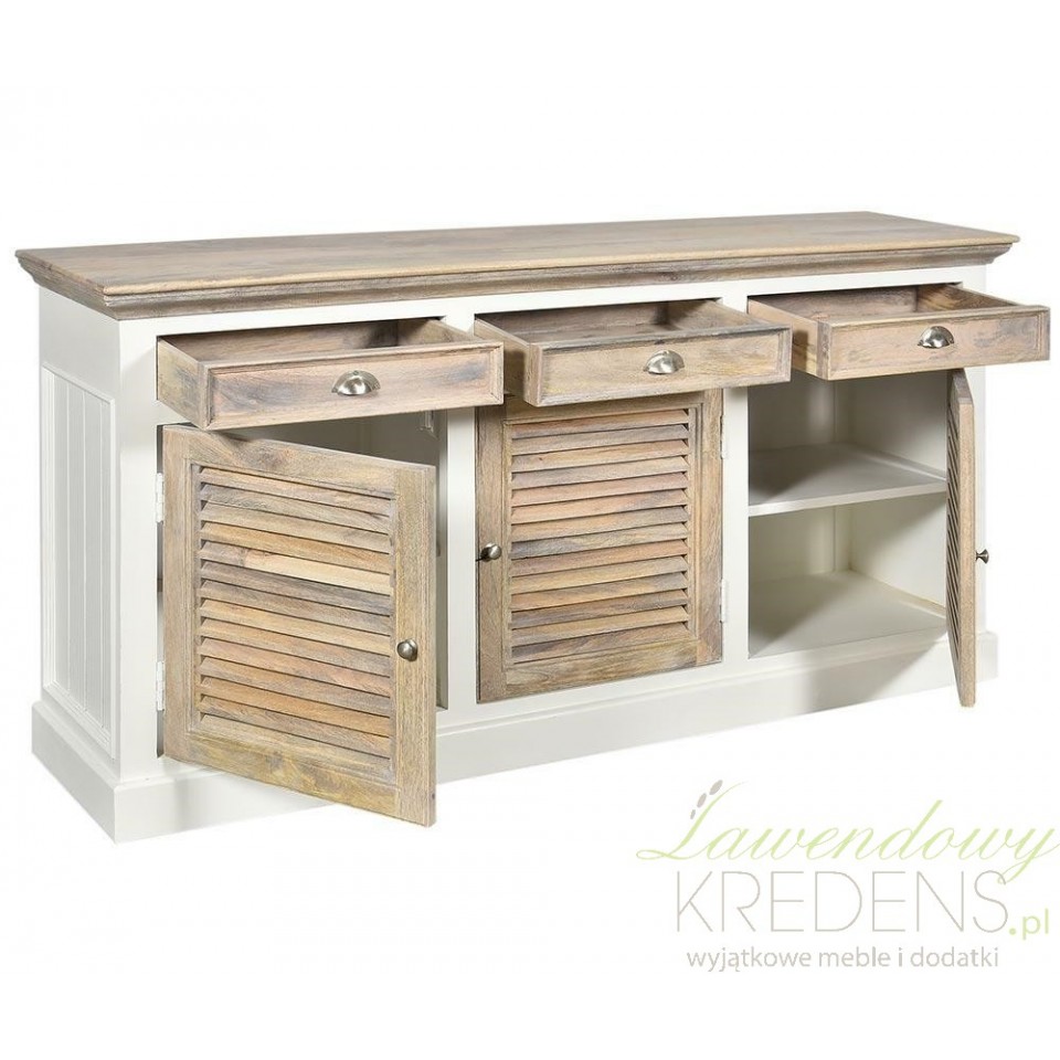 Komoda Belldeco z kolekcji Bristol White to mebel, który łączy w sobie ponadczasową estetykę i solidne wykonanie z drewna mango i akacji. Szeroka bryła, ręcznie malowana powierzchnia oraz charakterystyczne żaluzjowe fronty nadają jej wyjątkowy charakter, inspirowany wnętrzami nadmorskich domów w Hamptons.