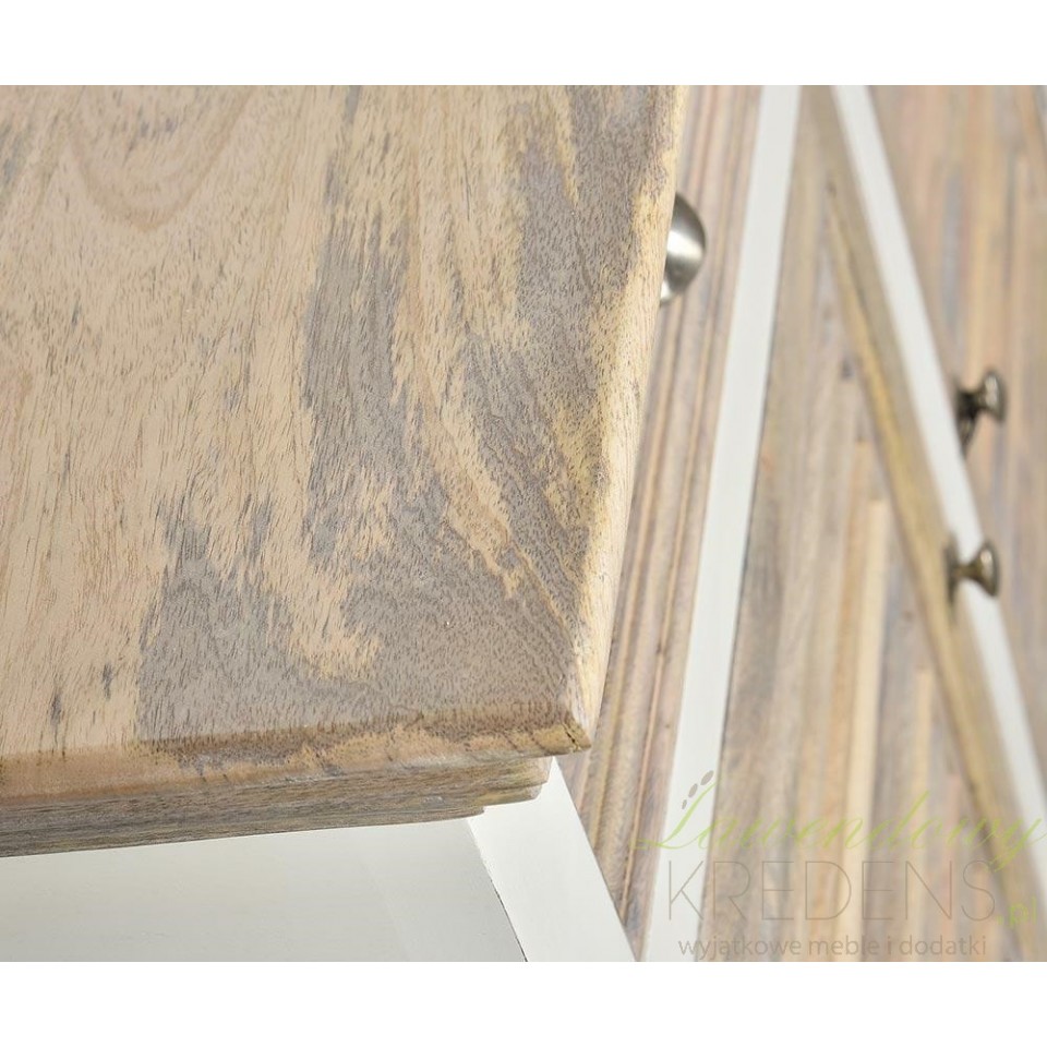 Każdy egzemplarz tej komody jest malowany ręcznie, co sprawia, że mebel posiada swój indywidualny urok. Niewielkie różnice w odcieniach, przetarcia czy subtelne pęknięcia farby są naturalnym efektem rzemieślniczego wykończenia. Dzięki temu Twoje wnętrze zyska element dekoracyjny, którego nie znajdziesz w masowej produkcji.