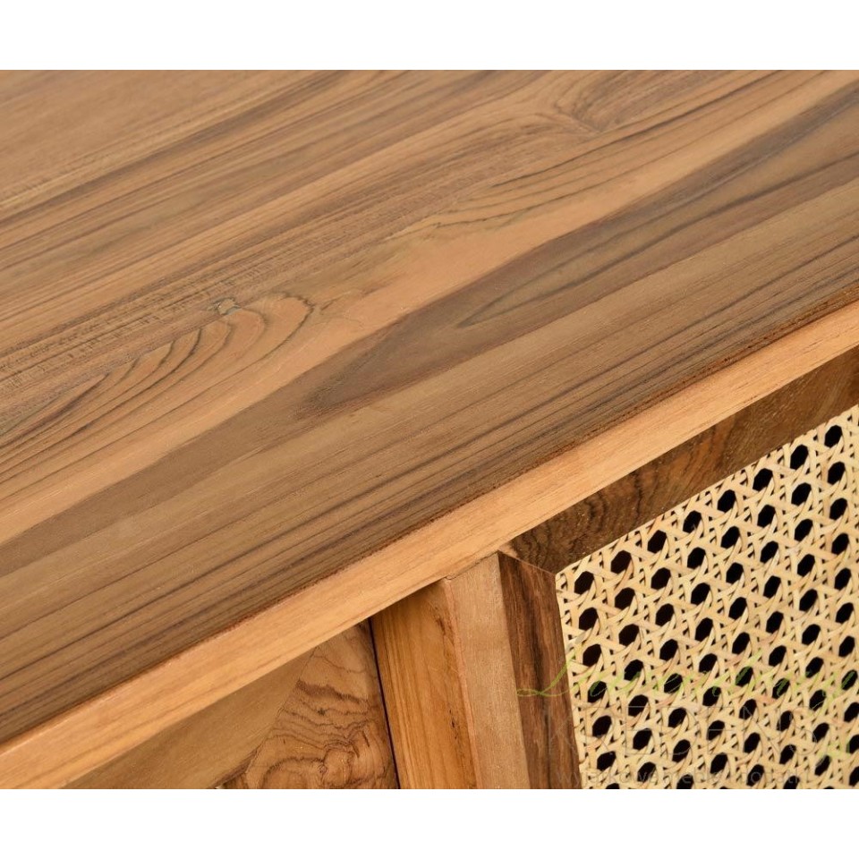 Inspirowana stylem boho, wyróżniająca się komoda Belldeco Bari do przechowywania. Wykonana z metalu, drewna i rattanu.