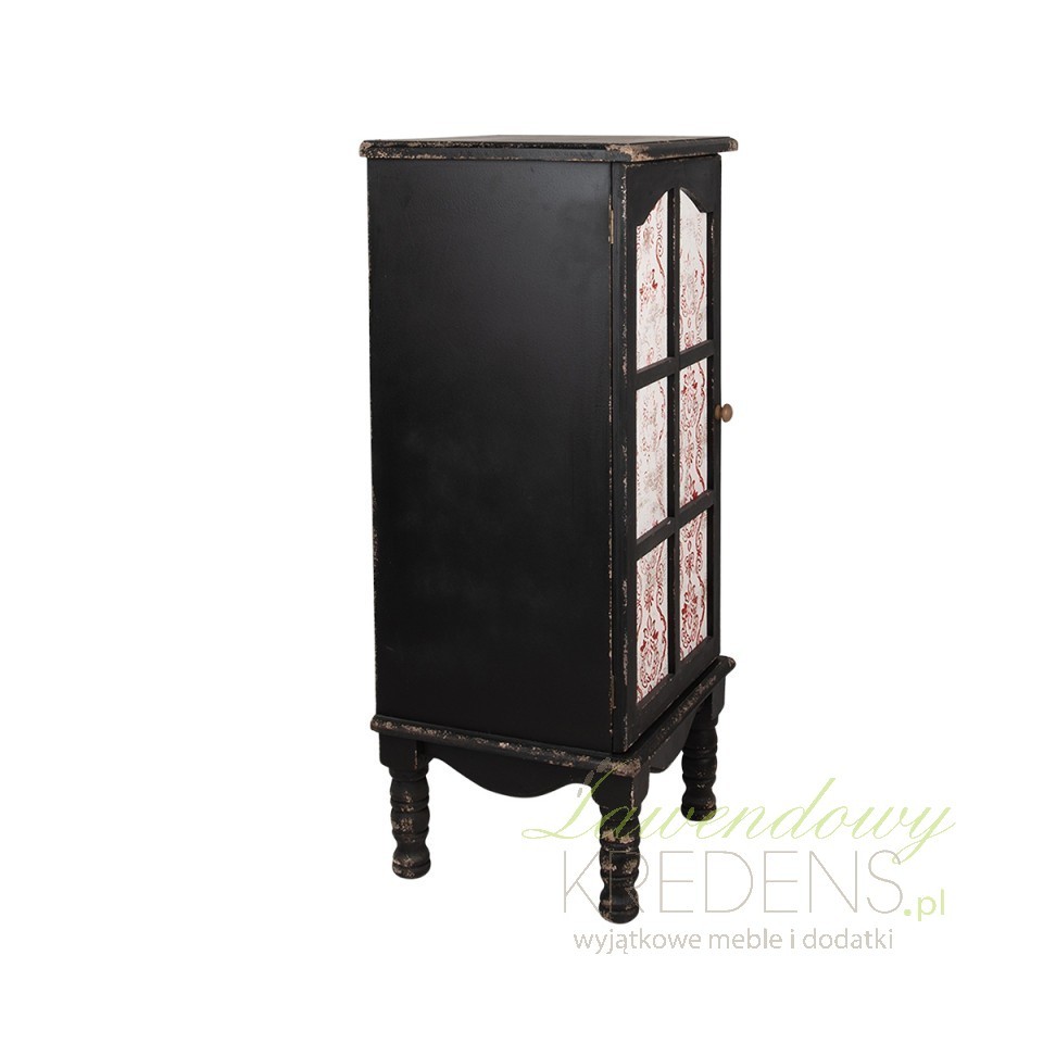 Szafka prowansalska Clayre & Eef to połączenie klasycznej elegancji i rustykalnego uroku. Wykonana z drewna w czarnym kolorze, zachwyca przeszklonym frontem z delikatnym, dekoracyjnym motywem. Idealna jako komoda lub witrynka w stylu vintage – wprowadzi do wnętrza klimat południowej Francji i subtelne piękno rzemiosła.