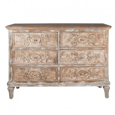 Wyglądająca na zabytkową, komoda w stylu prowansalskim postarzana Clayre & Eef idealnie dopełni wystrój wnętrza i zagwarantuje możliwość pojemnego przechowywania.
