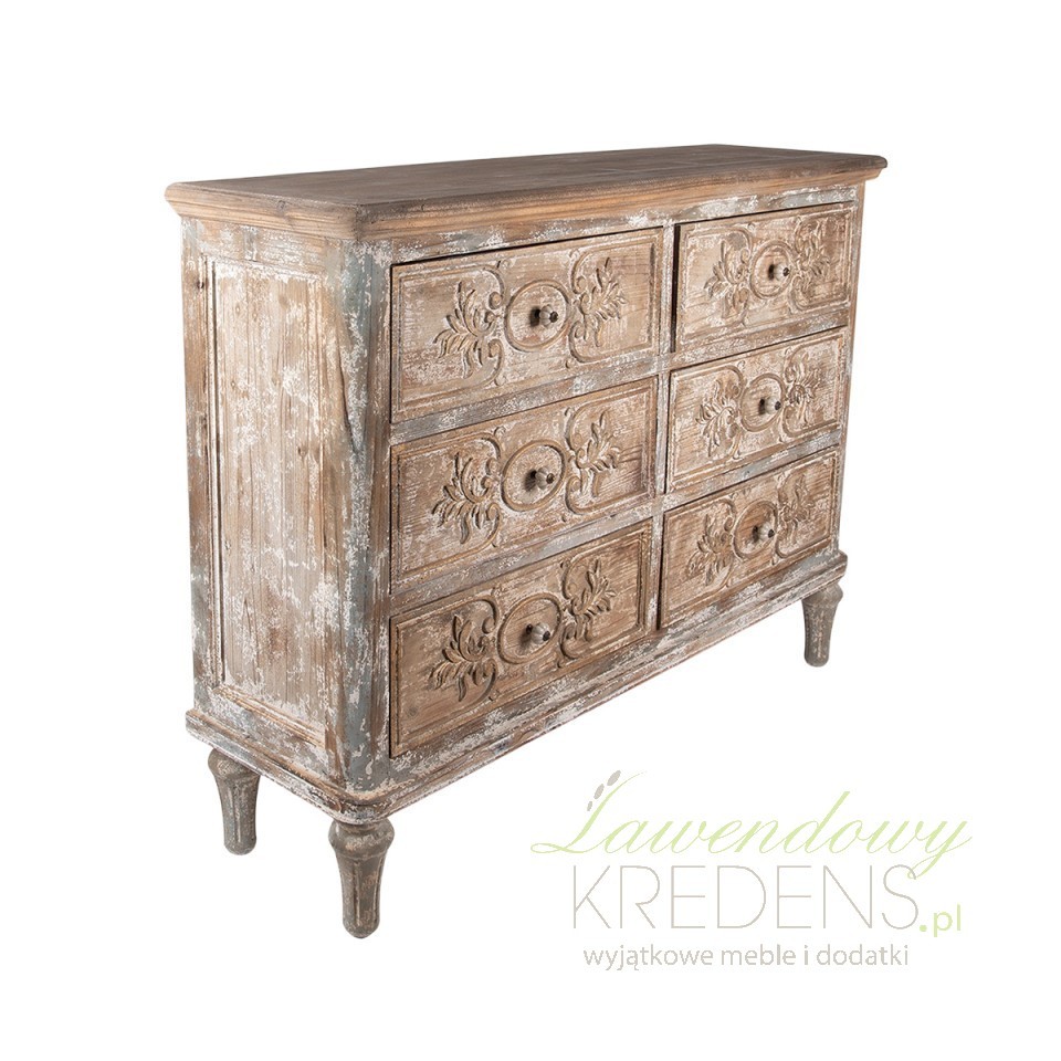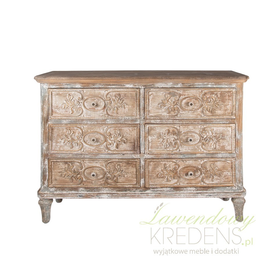 Dzięki efektownie postarzanym elementom, będziesz mógł bardzo szybko zanurzyć się w magicznej atmosferze jaką stworzy w Twoim domu komoda w stylu prowansalskim postarzana. Masz dość chwiejącej się szafki na ubrania? A może brakuje Ci miejsca na tekstylia kuchenne? Sześć pojemnych szuflad ma za zadanie zapobiec wszystkim Twoim problemom związanym z przechowywaniem. To jednak nie koniec. Za sprawą efektownych zdobień, ta komoda jest gotowa do zaimponowania gościom - podobnie jak wszystkie meble prowansalskie z kolekcji Clayre & Eef! Zamów komody w stylu prowansalskim już teraz!